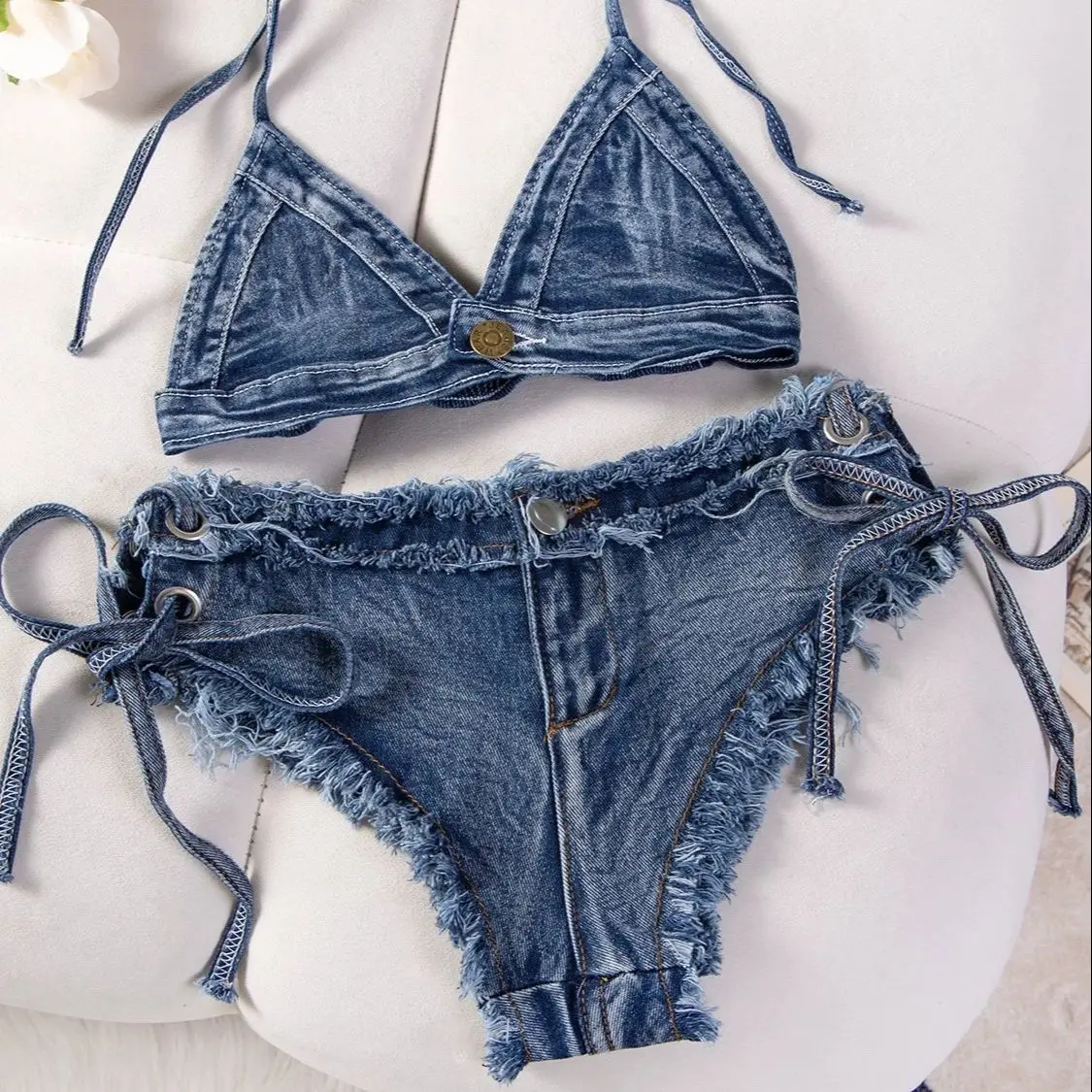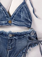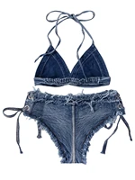 DEKA Brazilian Denim Bathing Suit Women Suits Bikini Set Lace Up Drawstring Beachwear Solid Summer Vintage