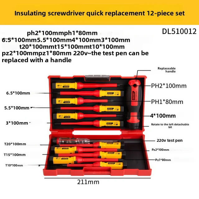 Price range: 5.06$ through 9.65$Deli 5/7/12 Pcs VDE Insulated Screwdriver Sets Slotted Phillips Magnetic Tip Electrician Repair Hand