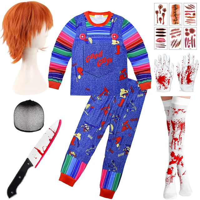 Kids Halloween Cosplay Ghost Doll Chucky Costume Carnival Party Baby Girl Clothes Rainbow Striped Shirt Overalls Infant Clothing