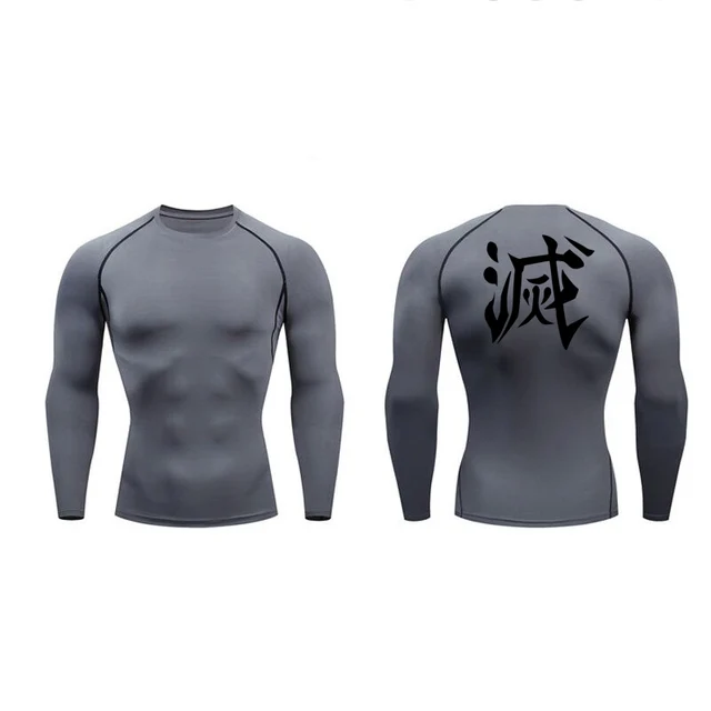 Demon Slayer Print Compression Shirts for Men Gym Workout Fitness Undershirts Short Sleeve Quick Dry