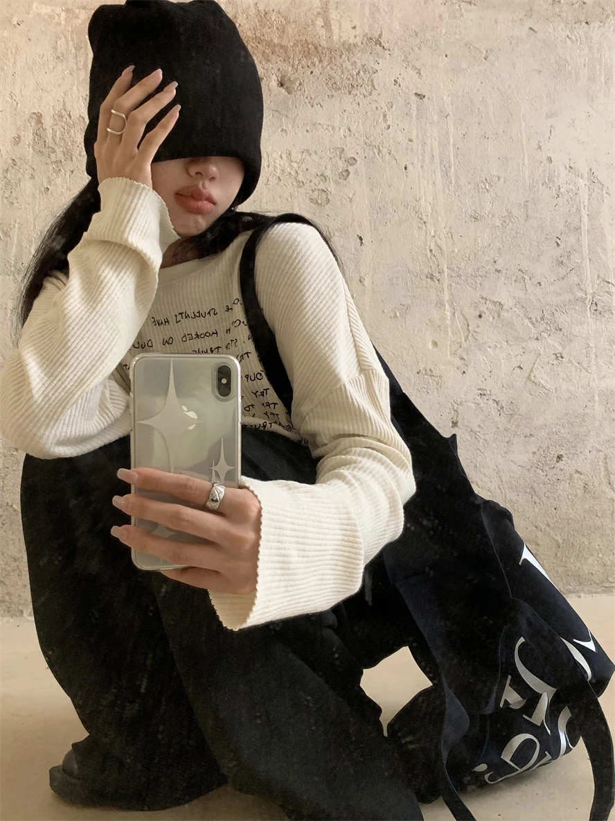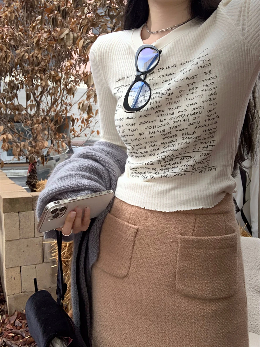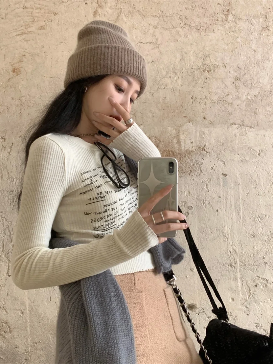 With its Korean-style round neck and long sleeves, this T-shirt is perfect for both casual and commuting wear.