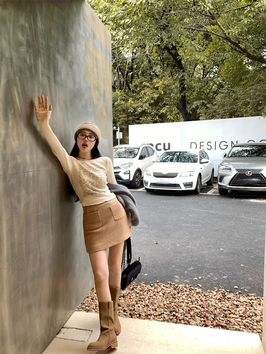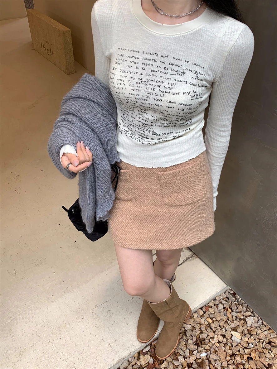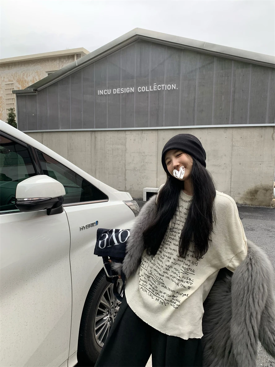 With its Korean-style round neck and long sleeves, this T-shirt is perfect for both casual and commuting wear.