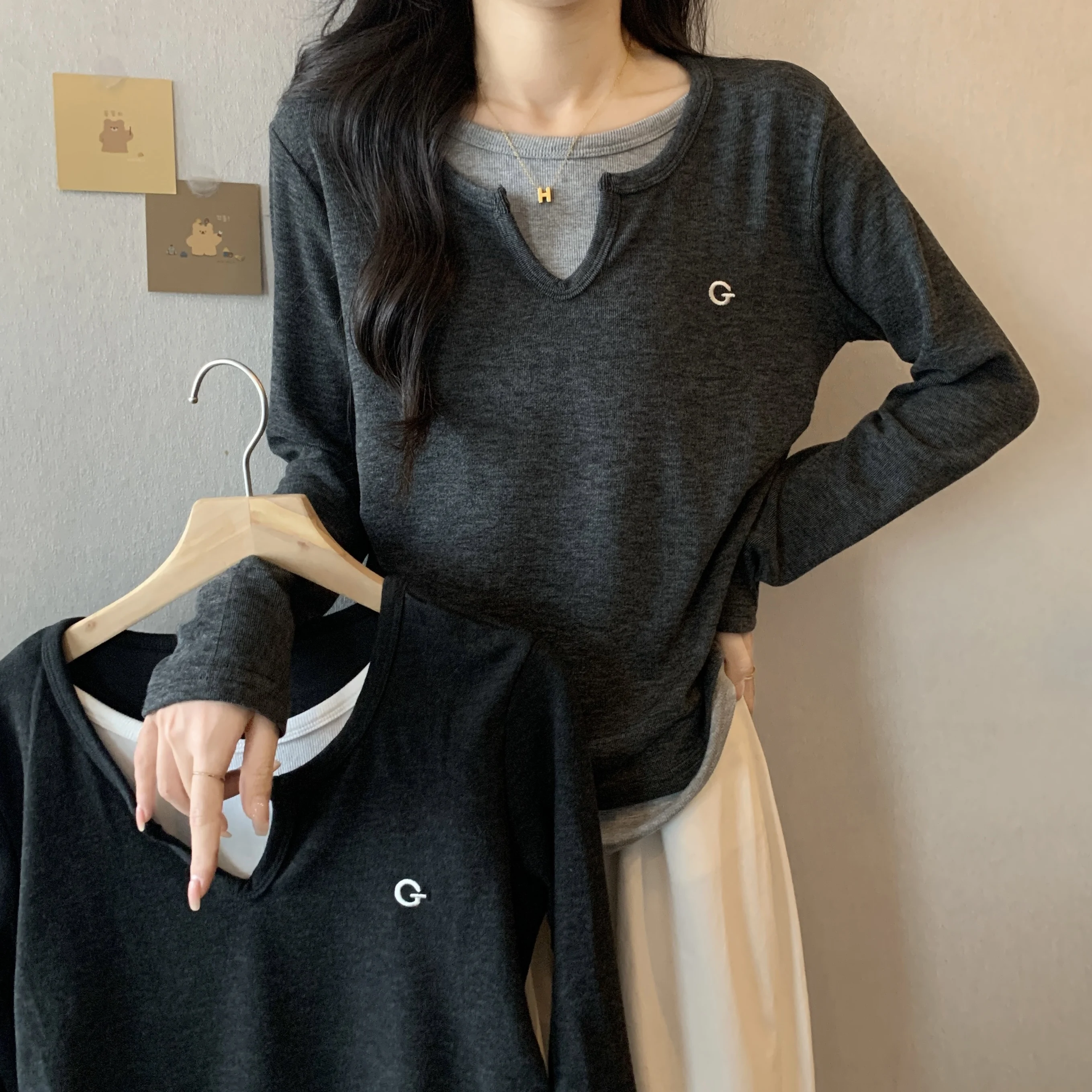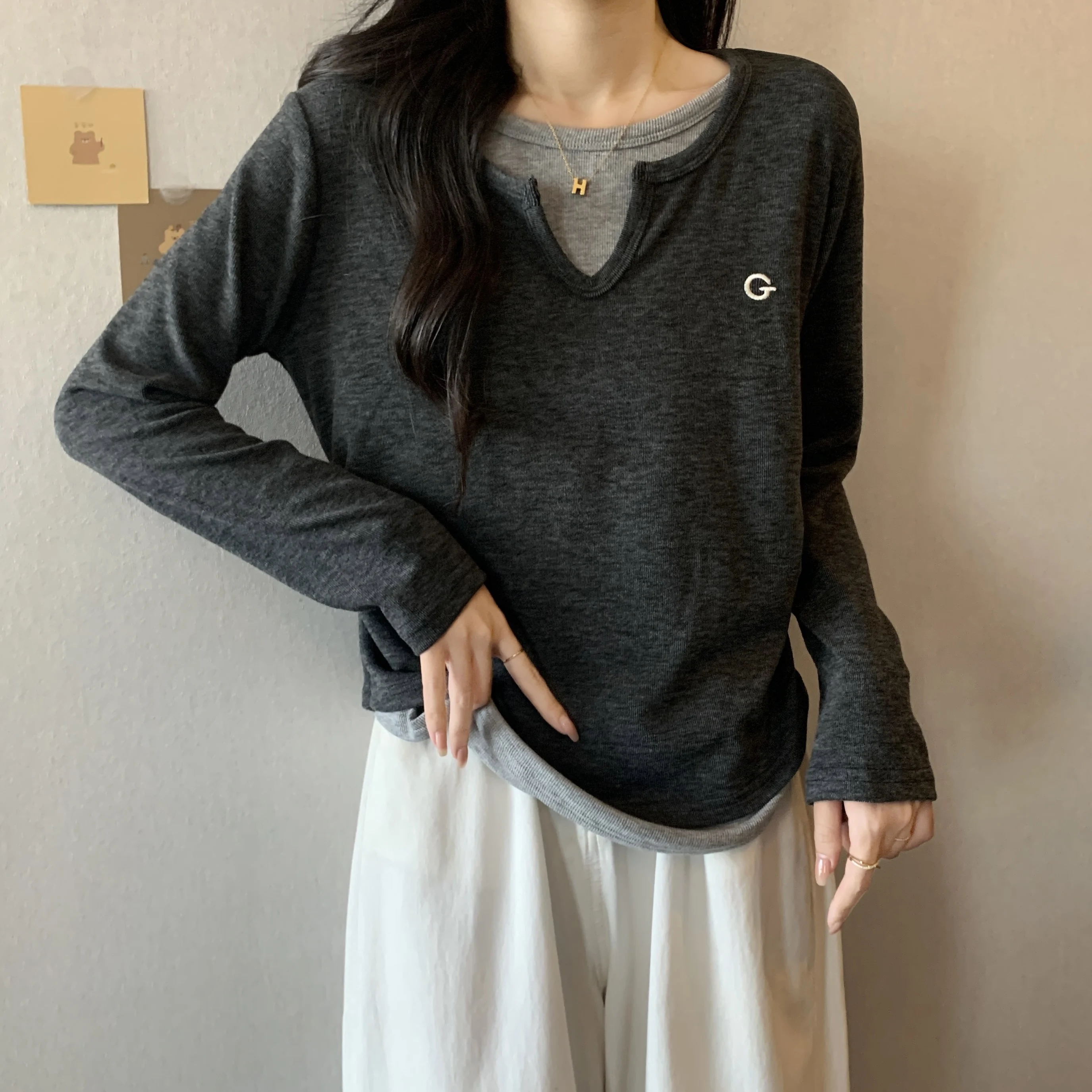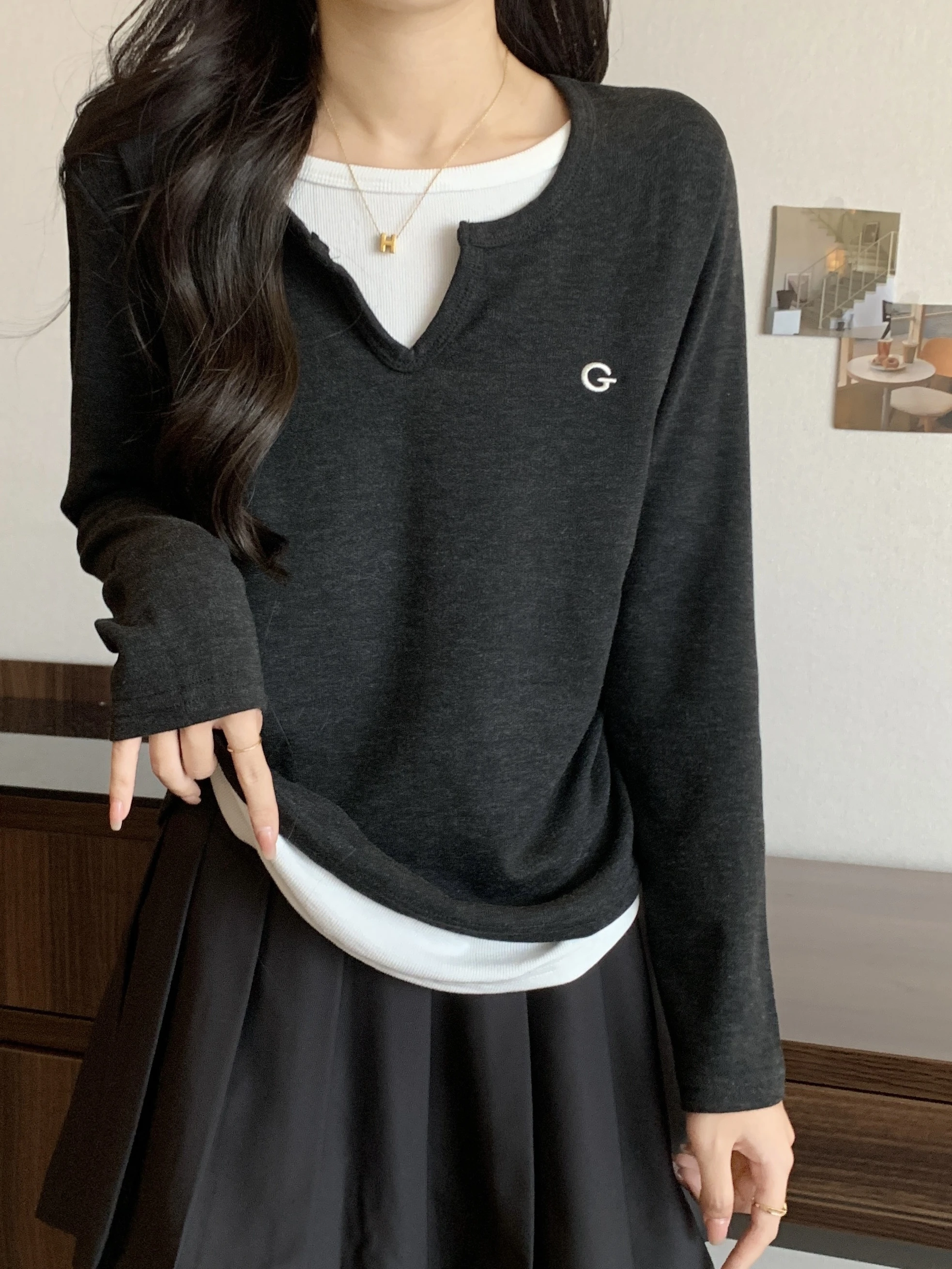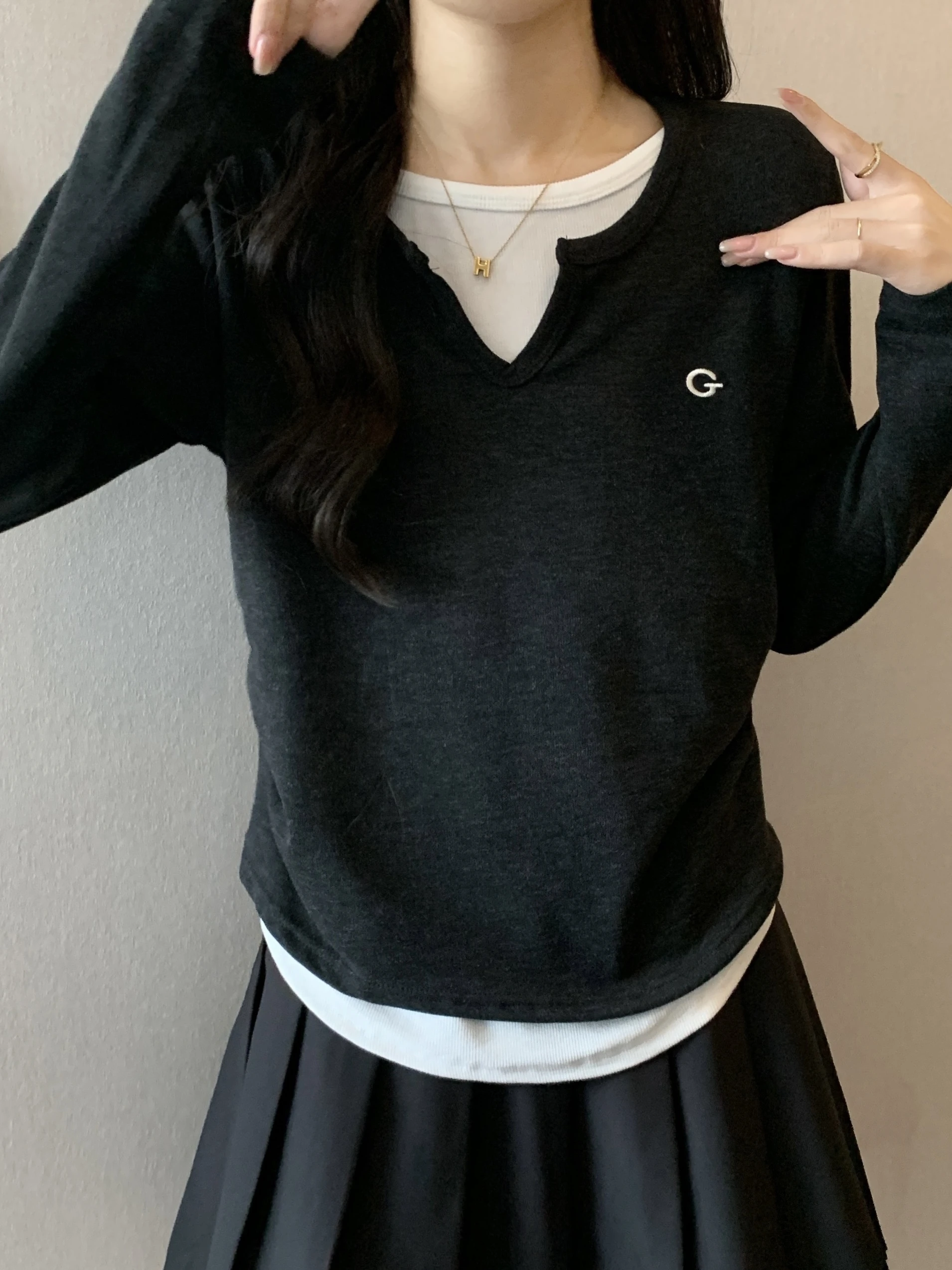 This black long-sleeve T-shirt features a unique design that sets it apart from the crowd, perfect for those who appreciate subtle fashion statements.