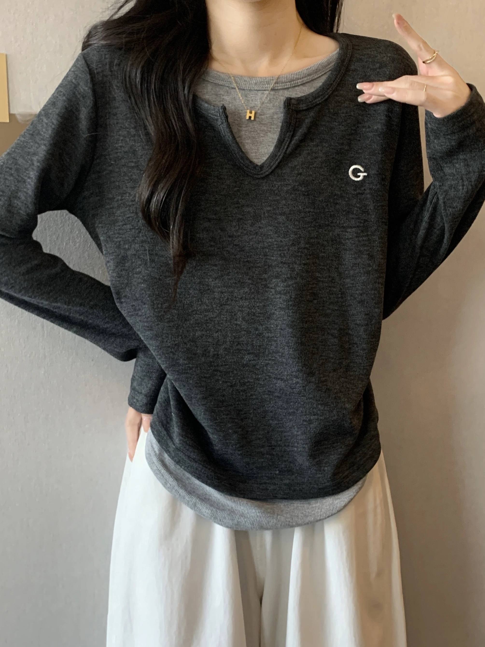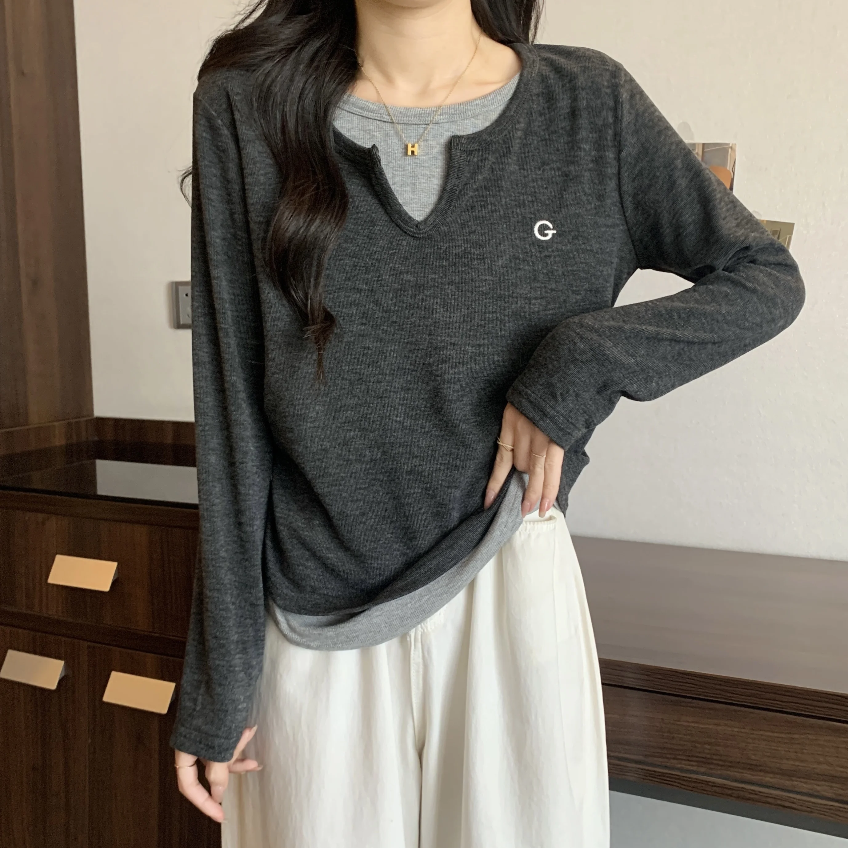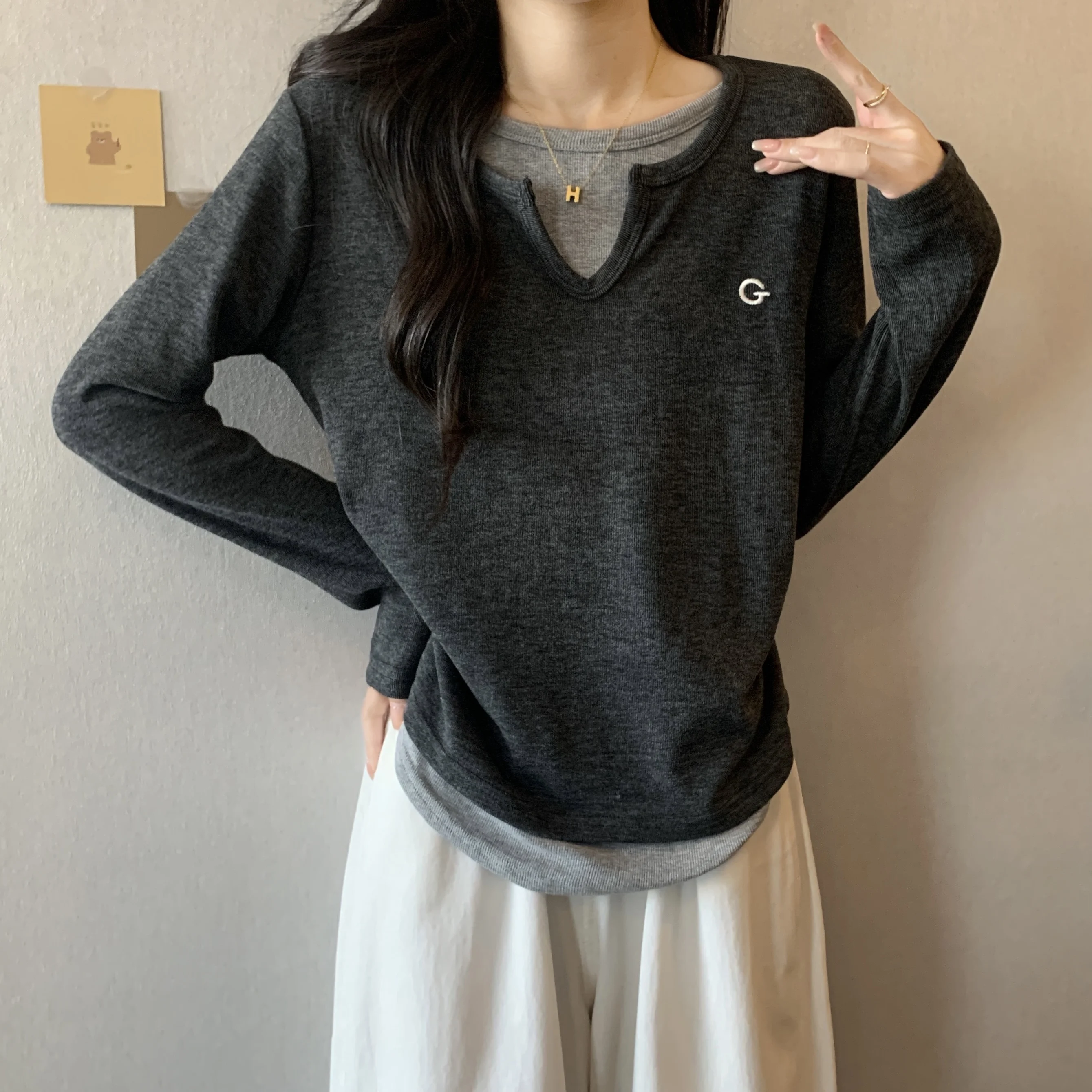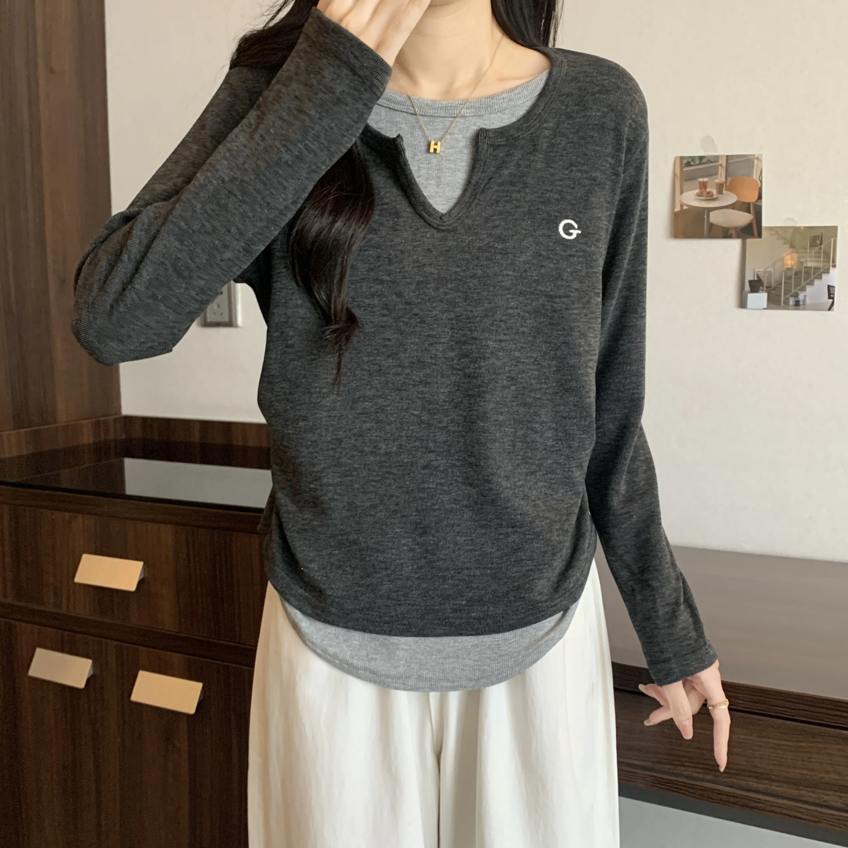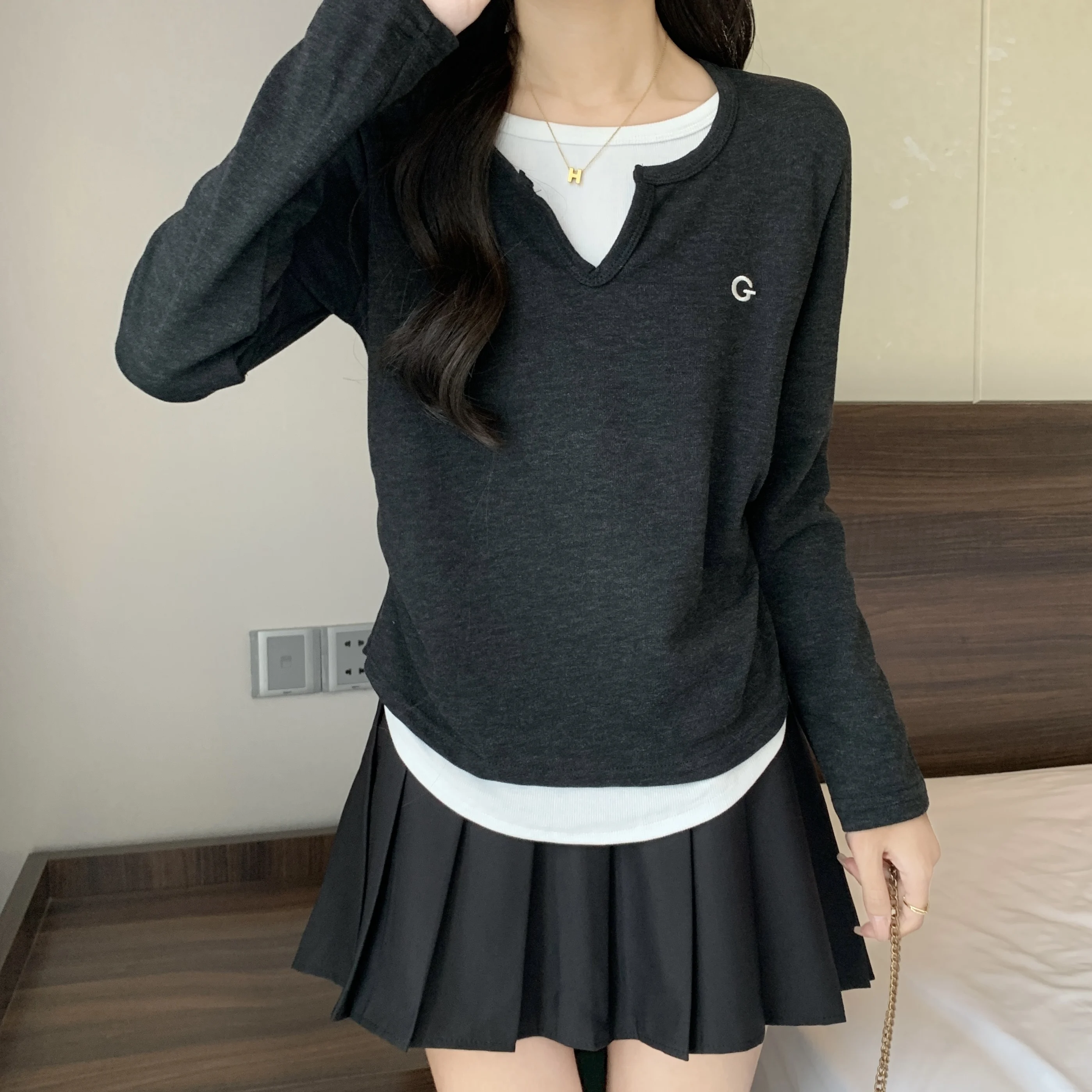This black long-sleeve T-shirt features a unique design that sets it apart from the crowd, perfect for those who appreciate subtle fashion statements.