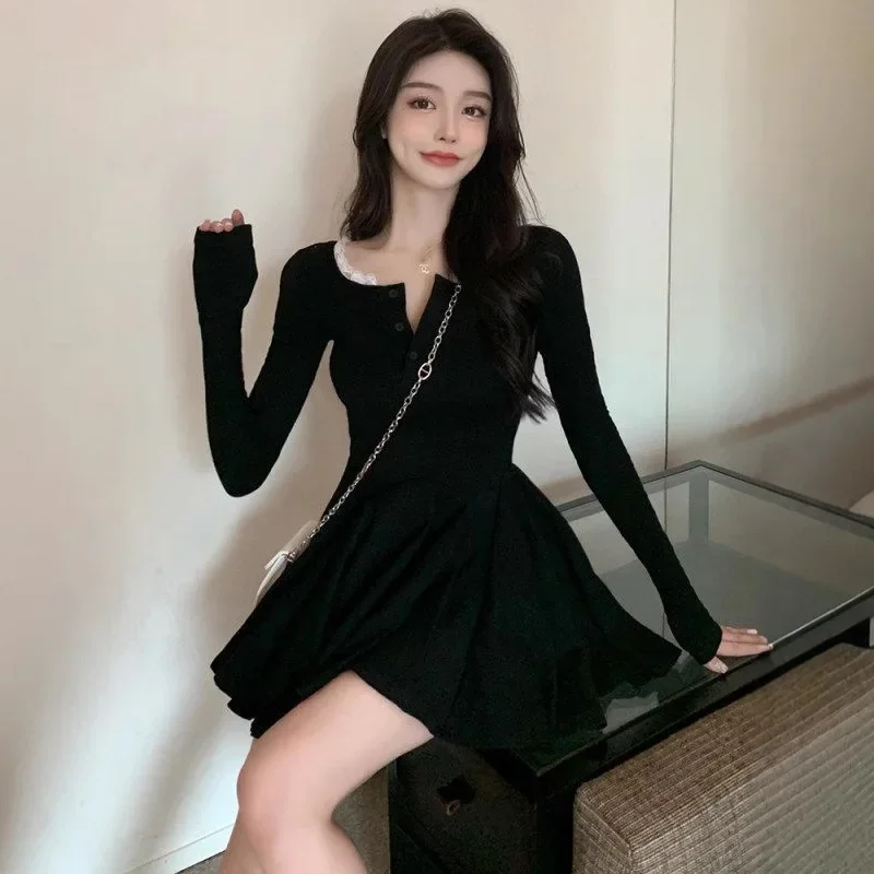 • Slim-fit Design : The Design Sense Niche Black Slim-fit Long-sleeved dress accentuates your figure with its tight waist and slimming skirt, perfect for an elegant yet comfortable look.