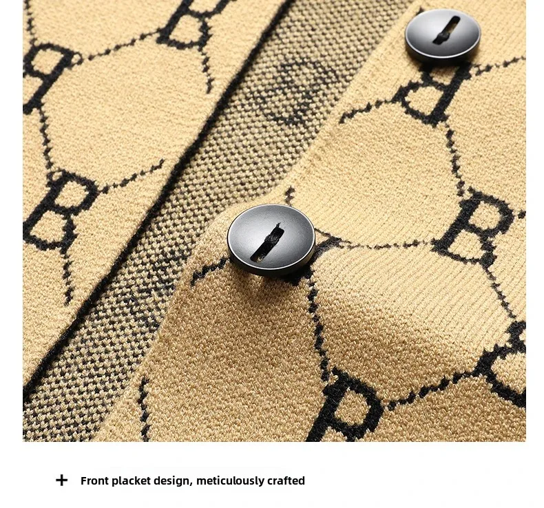 Designer Luxury Brand Men’s Knitted Cardigan Lapel Embroidered B Jacquard Sweatercoat Korean Winter