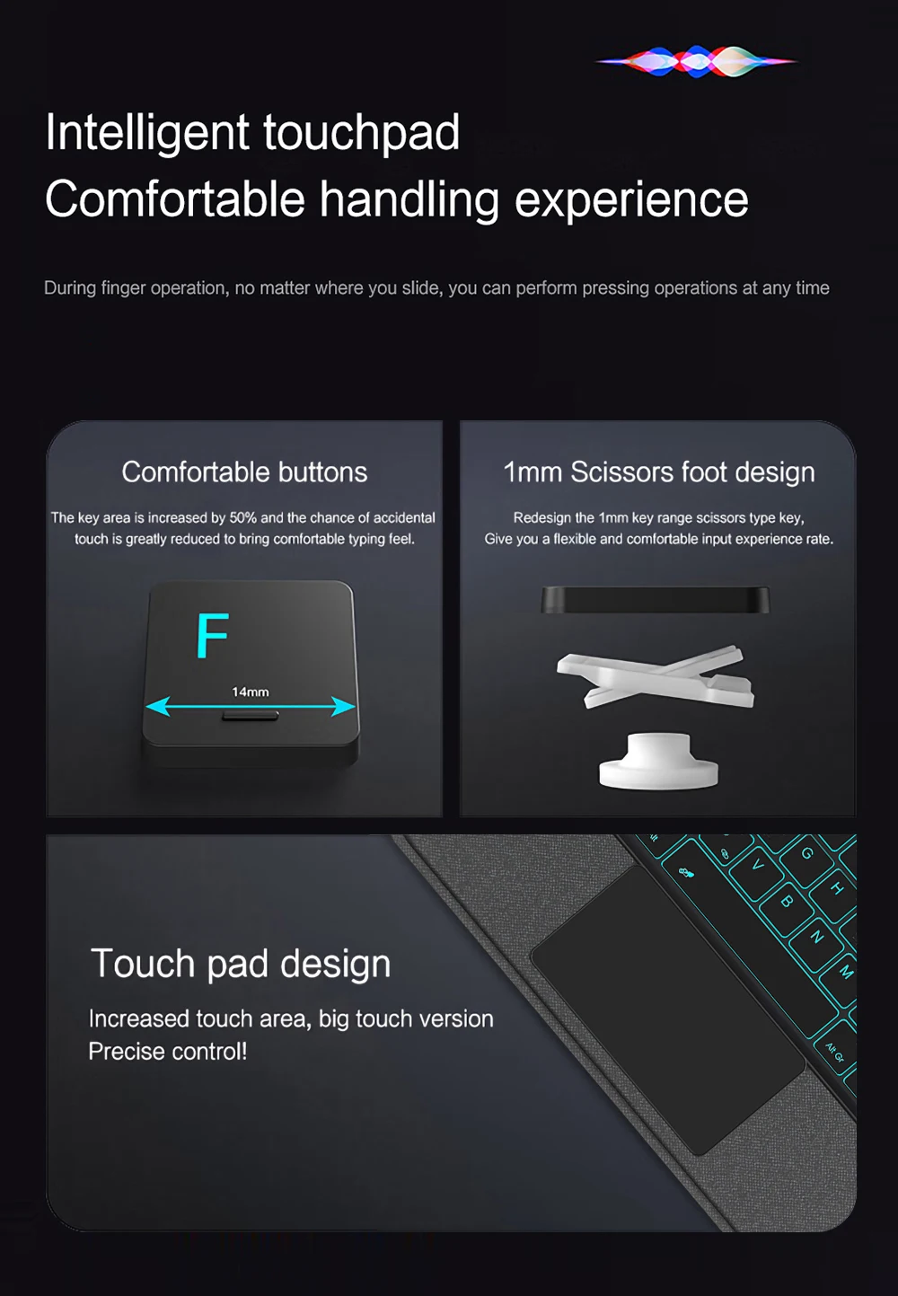 Bluetooth connection, with touch pad, with backlight.,Horizontal and vertical support