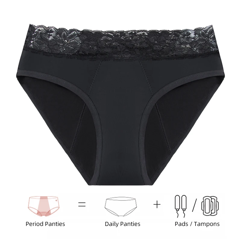 Leak Proof Menstrual Panties Incontinence Antibacterial Briefs For Women Period Cycle Underwear Lace Trim Period Underwear