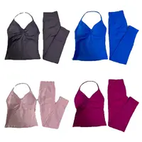 DF Impact Active Set V-Neck Cami Tank + Seamless Leggings | 4-Way Stretch & Sweat-Wicking for Yoga/Gym/Runnin