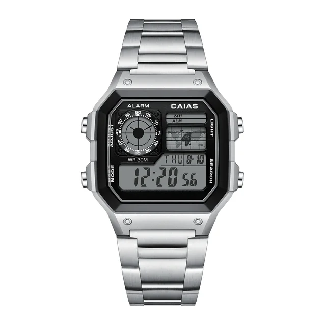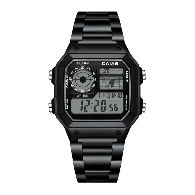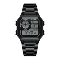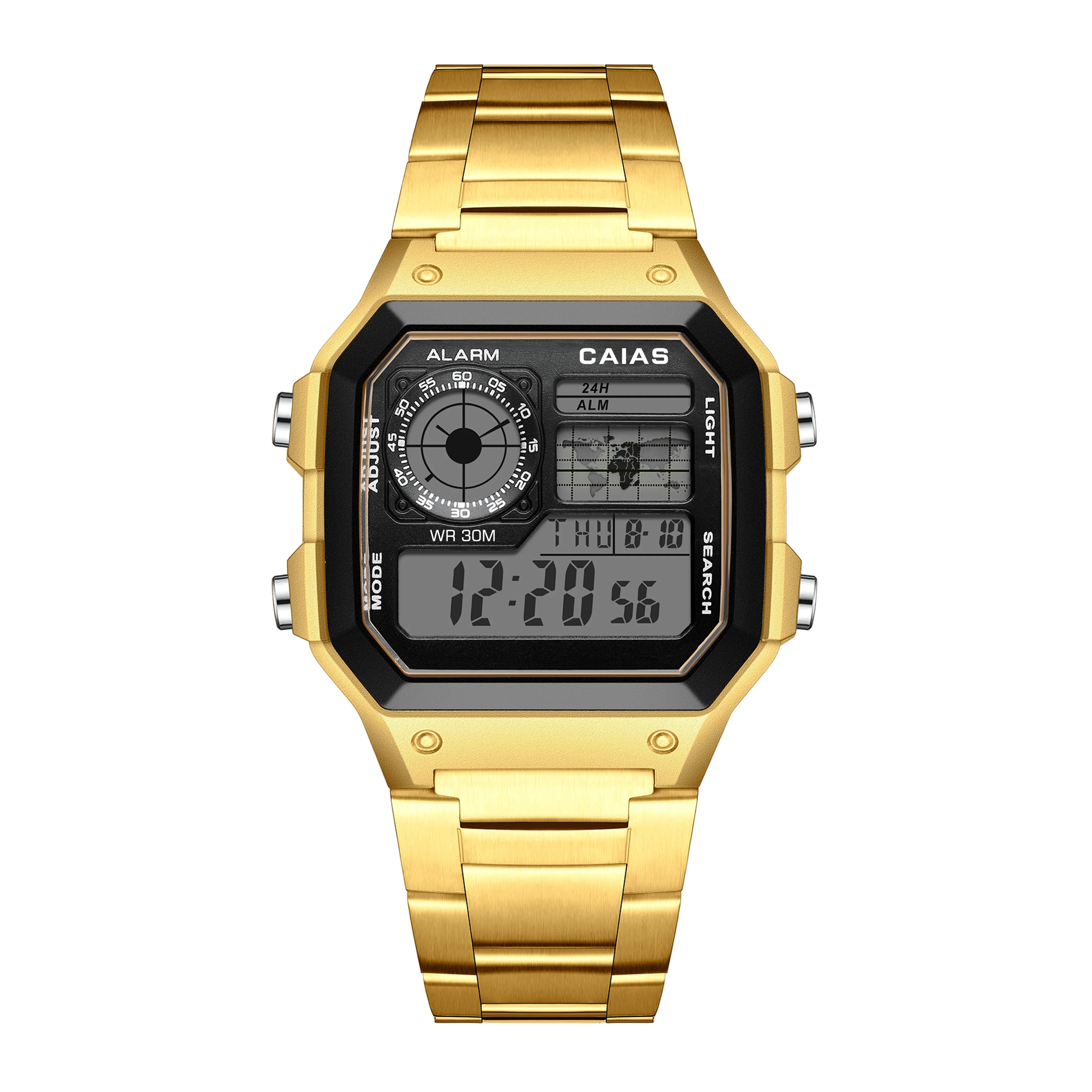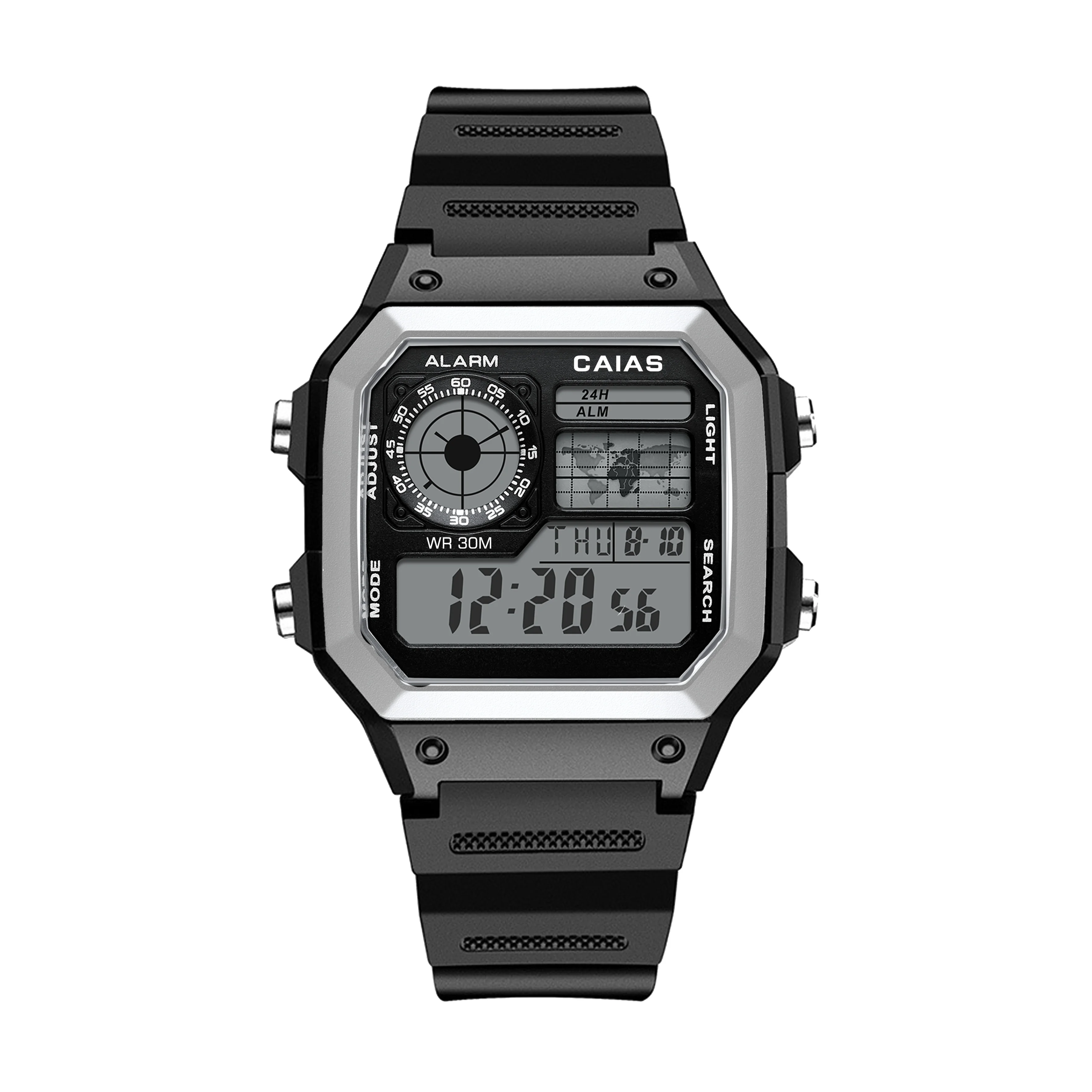 Digital 1200 Sport Electronic Unisex Watch Square LED Dial World Time Full Function Oak Series