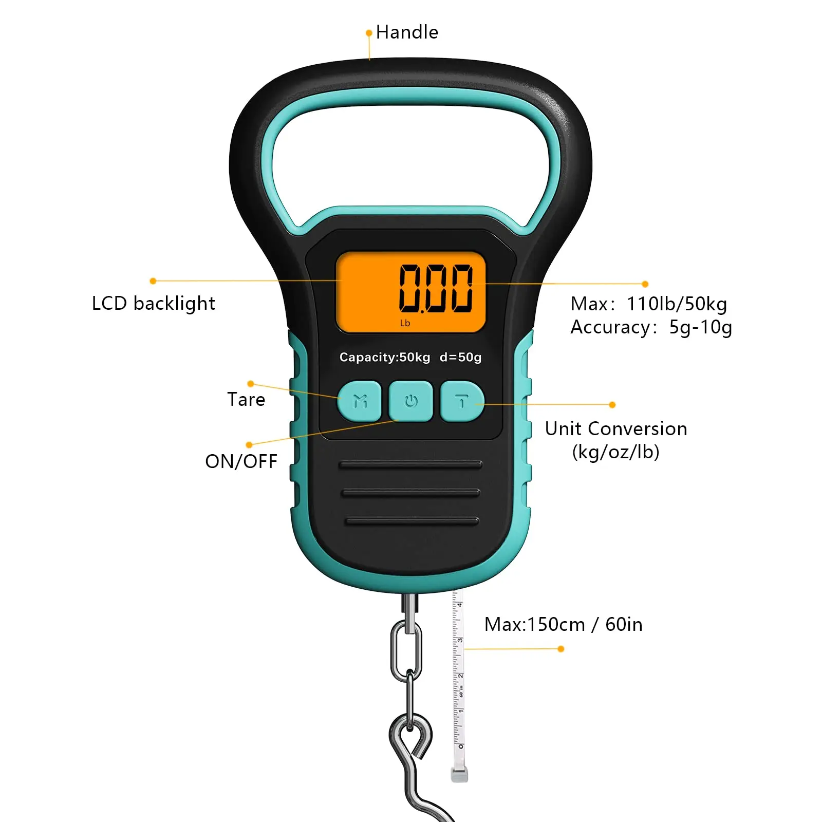 【Wide Measuring Range & High Precision】The digital fishing scale has a measuring range of 15g-50Kg, built-in high-precision sensor system, high sensitivity, accurate weighing, and a response time of about 2s. It also has three measurement units of Kg/LB/OZ, which will bring you greater convenience.