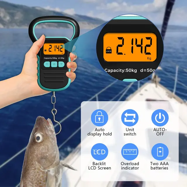 【Wide Measuring Range & High Precision】The digital fishing scale has a measuring range of 15g-50Kg, built-in high-precision sensor system, high sensitivity, accurate weighing, and a response time of about 2s. It also has three measurement units of Kg/LB/OZ, which will bring you greater convenience.