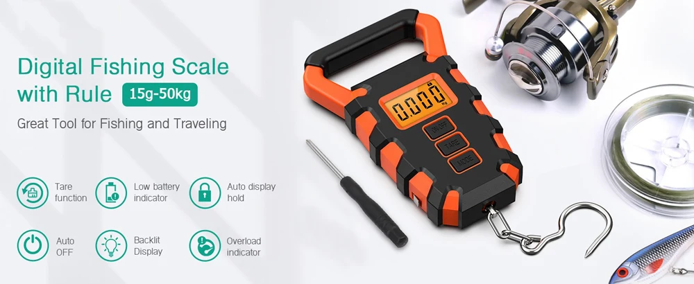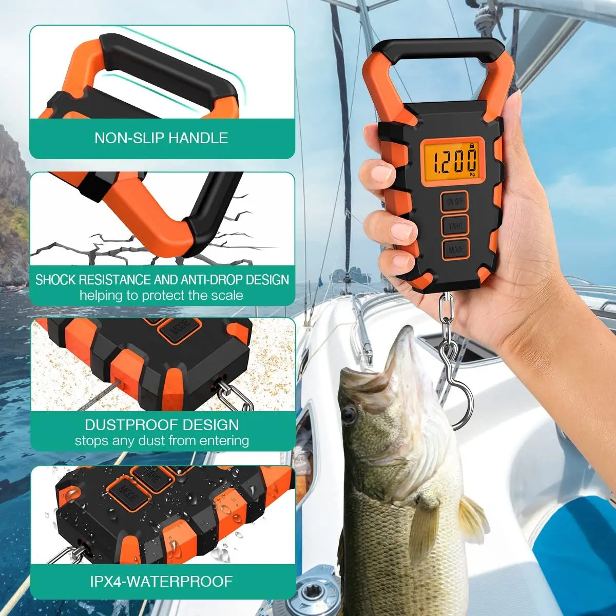 【IPX4 Waterproof & LCD Backlight】The digital fishing scale adopts IPX4 waterproof design. You don’t have to worry about damage caused by water when weighing fish. It can also accompany you to enjoy a unique fishing time even in rainy days. At the same time, it uses an orange backlit display with clear readings, making it easy to read the data even in the dark.