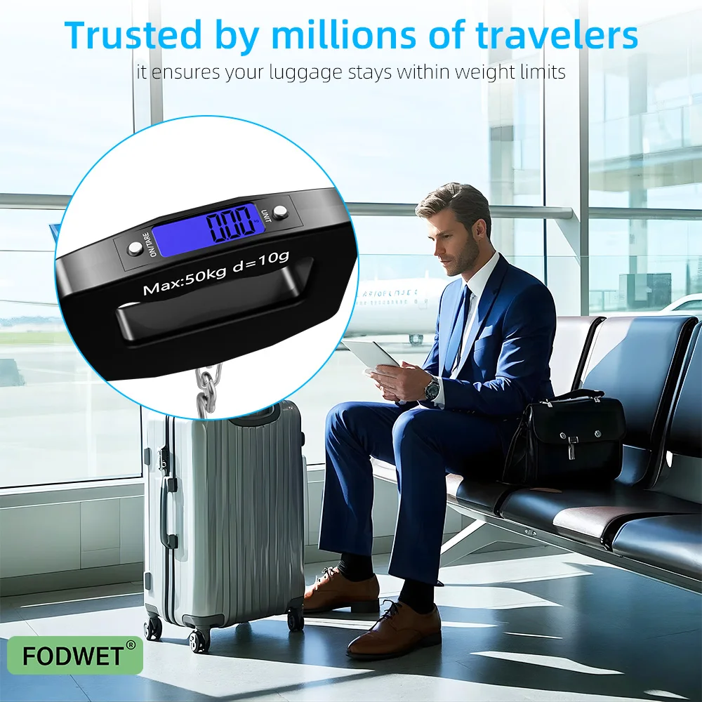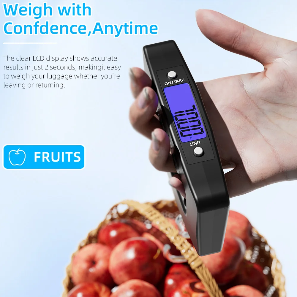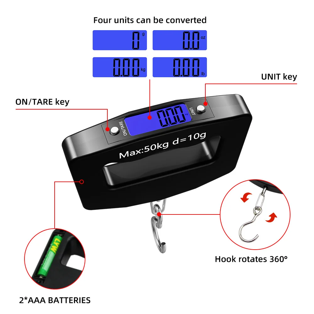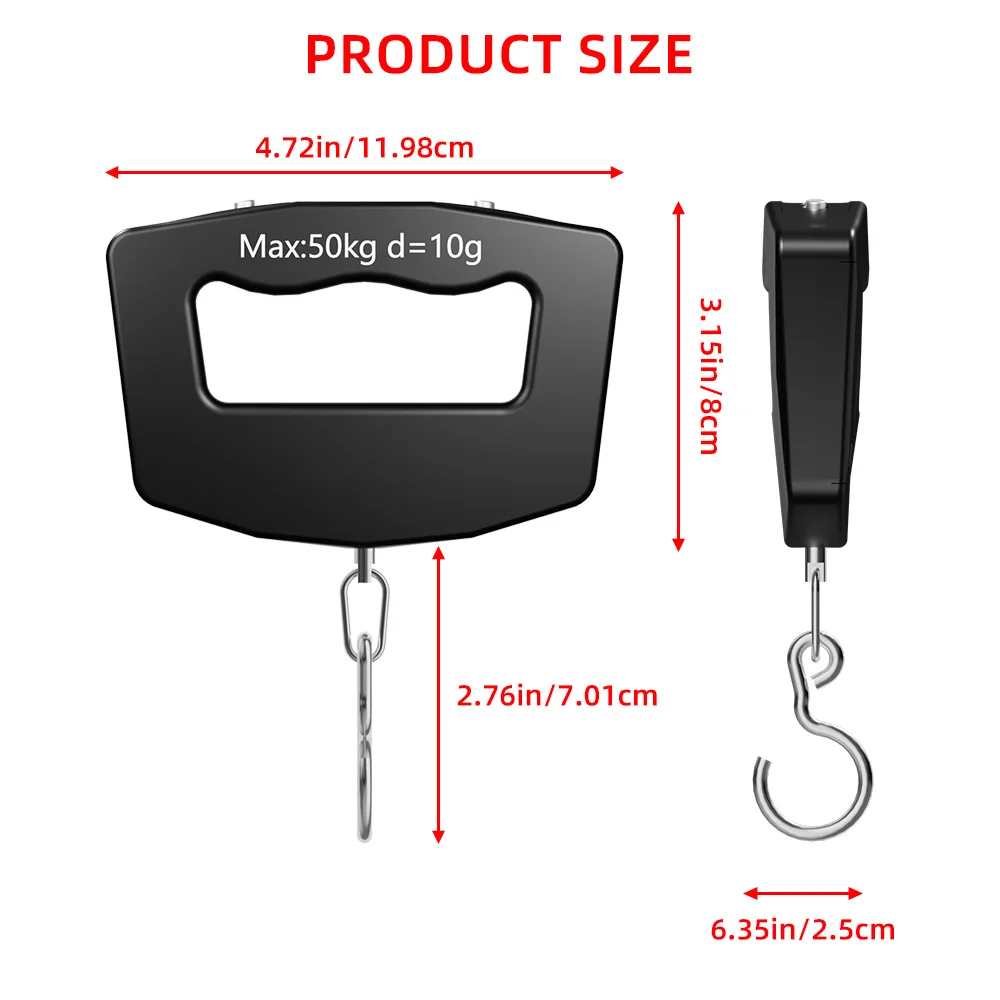 50kg/110lb Portable Scale LCD Digital Luggage Suitcase Scale Handled Travel Baggage Bag Fish Weighting Hook Hanging Scales