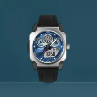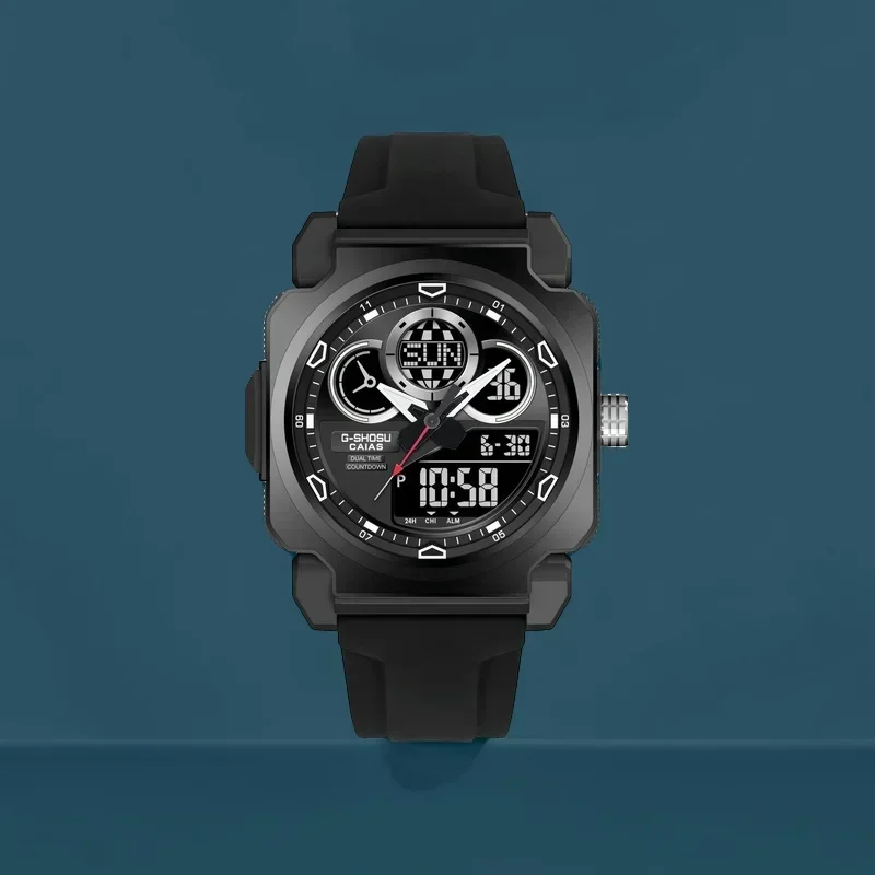 Digital Sports Electronic Unisex watch World Time Full Function LED Dual Display Alloy Square Dial GM