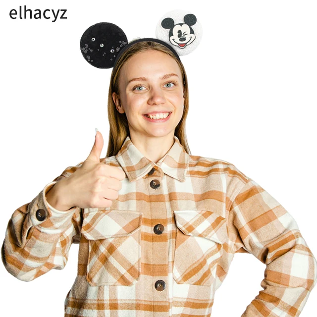 Disney Festival Party Cosplay Mouse Ears Headband 3.3" Ears Glitter Hairband Without Bow For Boys DIY Cartoon Hair Accessories