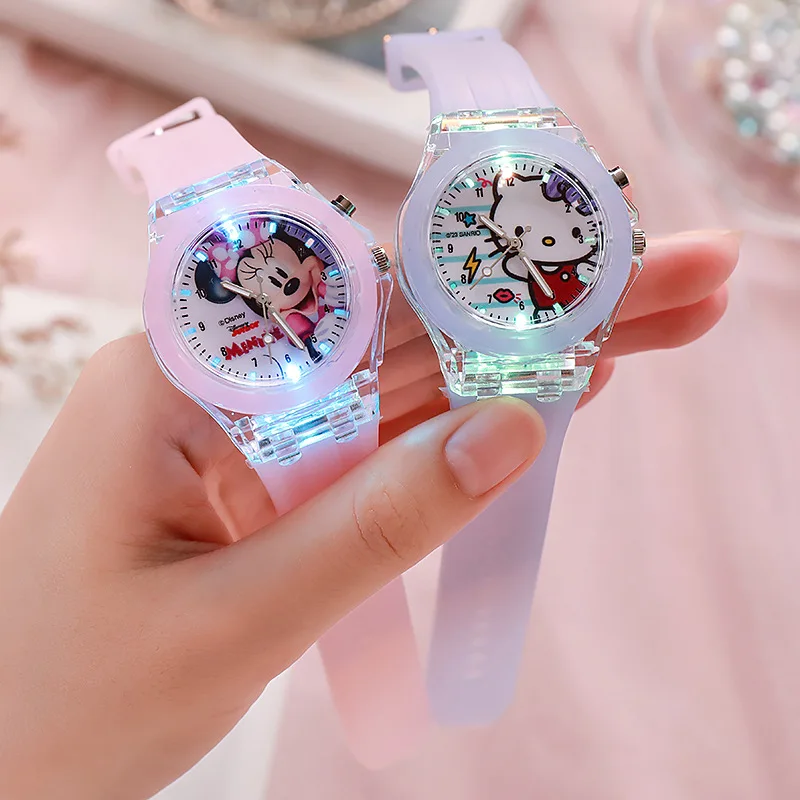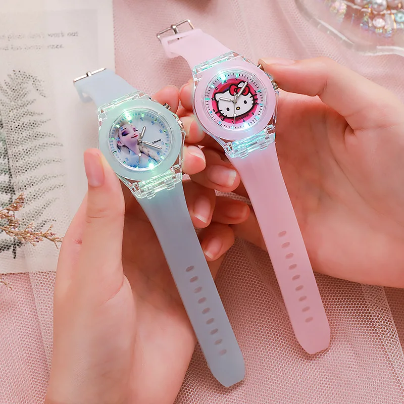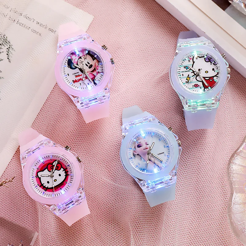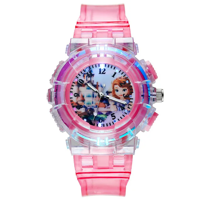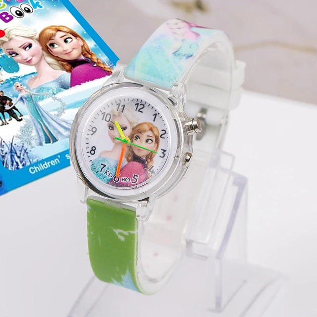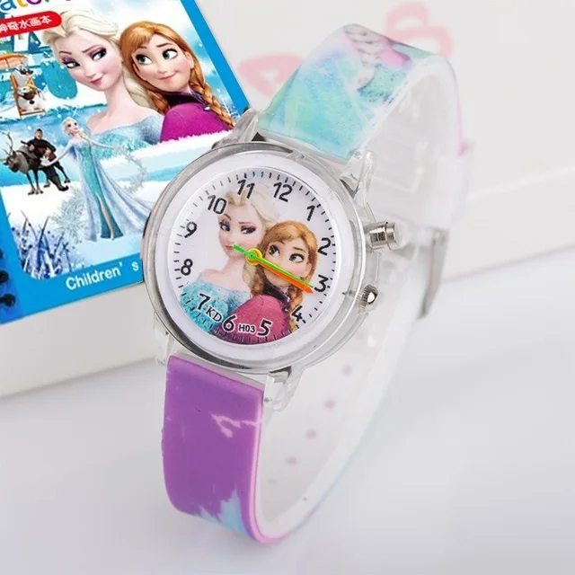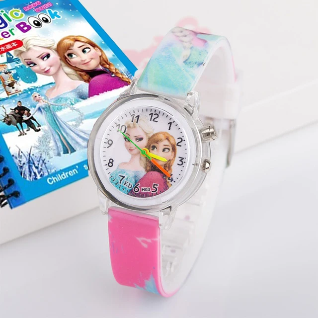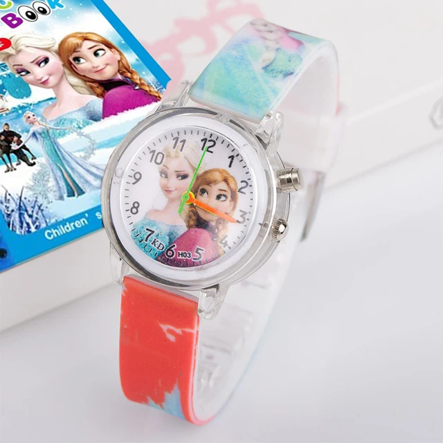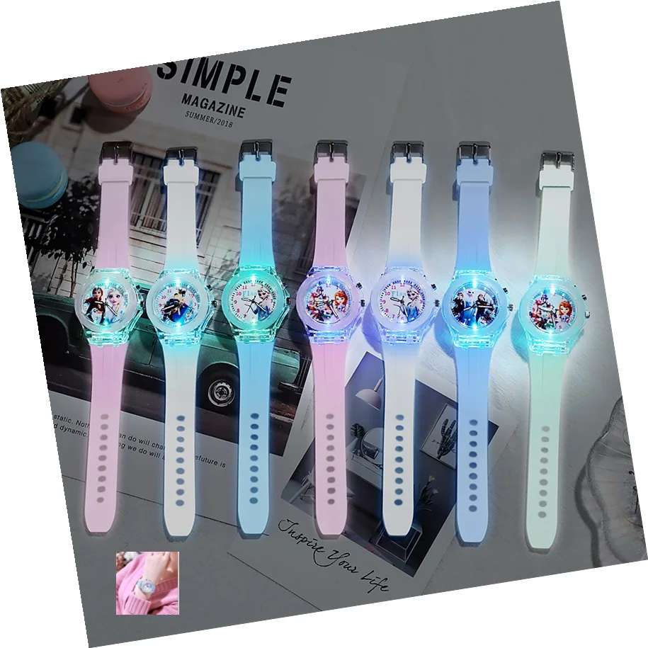 Disney Frozen Princess Pattern Led Glowing Flash Children Watch Toys Fashion Birthday Party Wristwatch