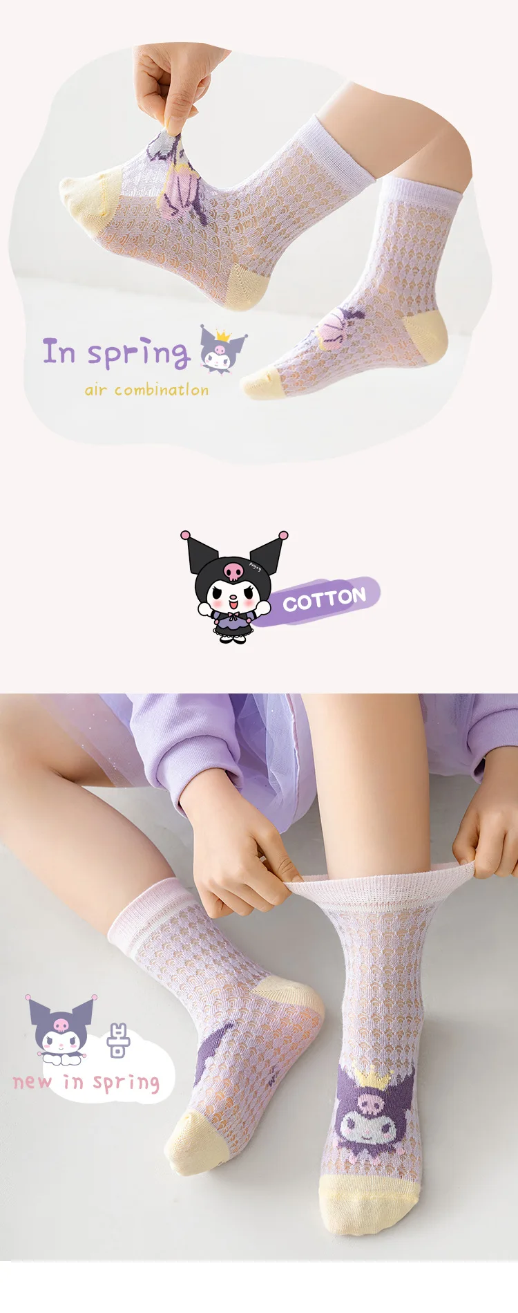 Kids girls Socks, Kulomi cartoon Socks, soft cotton Socks, Kid spring Casual cartoon Socks