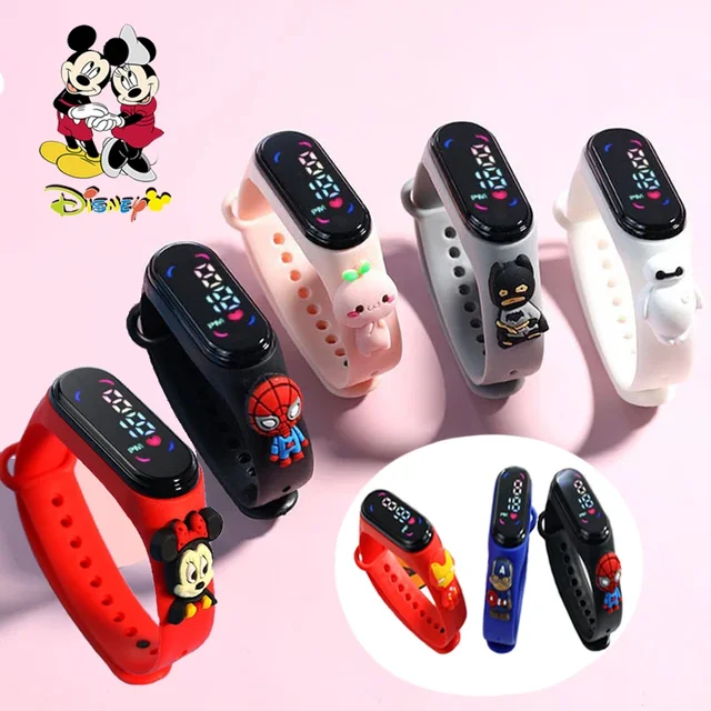 Disney Frozen Princess Spider Man Pattern Led Glowing Flash Children Watch Toys Fashion Birthday Party Christmas Gifts for Kids