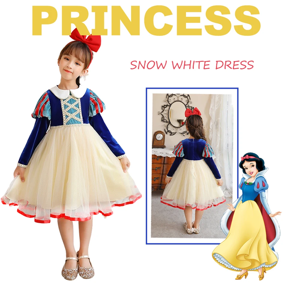 Disney Princess Costume Girls Classic Autumn Snow White Dress Luxury European Style Winter Clothes Birthday