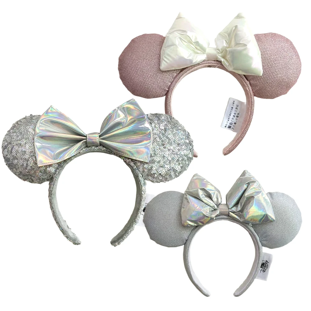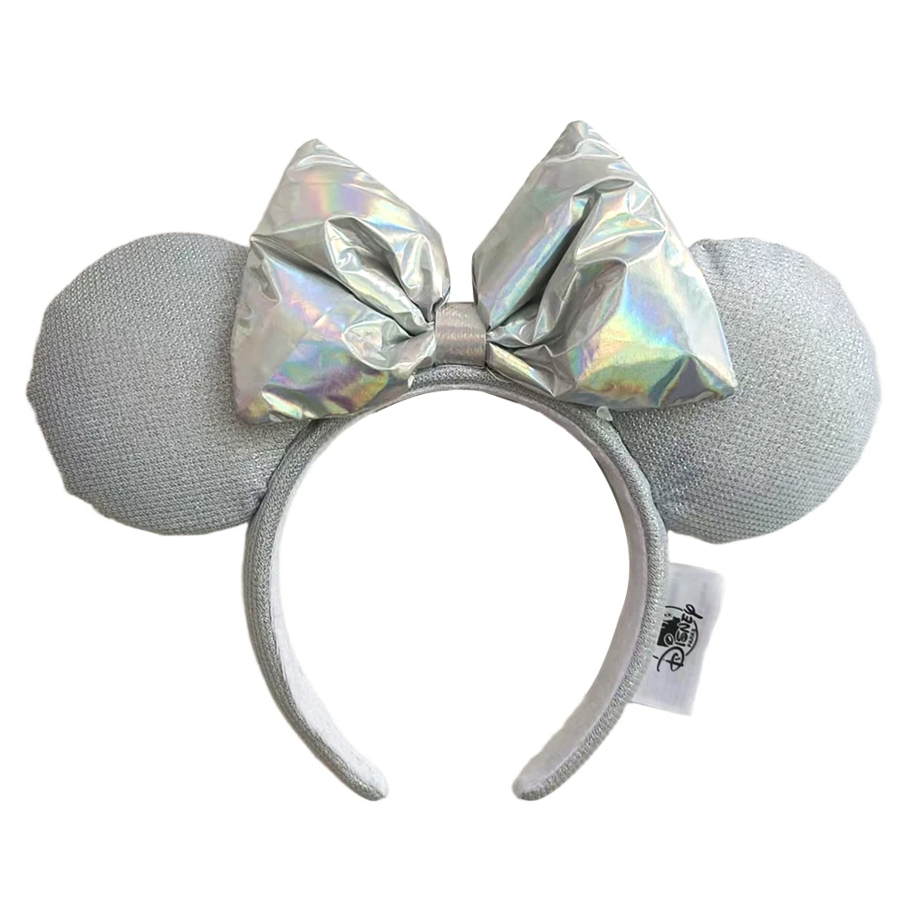 Disney Silver Pink Mickey Mouse Ear Headband For Adults Headband PP Cotton Headband Silver White Bow