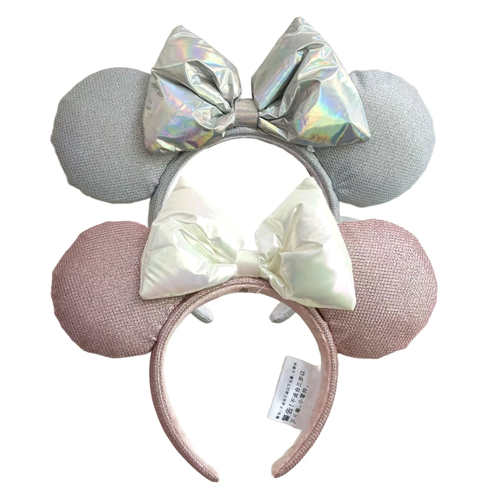 Disney Silver Pink Mickey Mouse Ear Headband For Adults Headband PP Cotton Headband Silver White Bow
