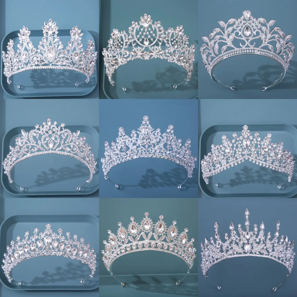 Diverse Silver Color Crystal Crowns Bridal Tiaras Fashion Queen Rhinestone Diadem CZ Headpiece Wedding Hair Jewelry Accessories