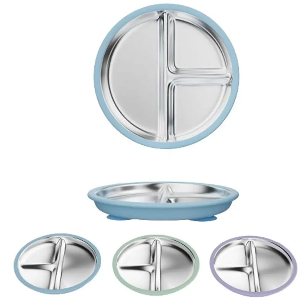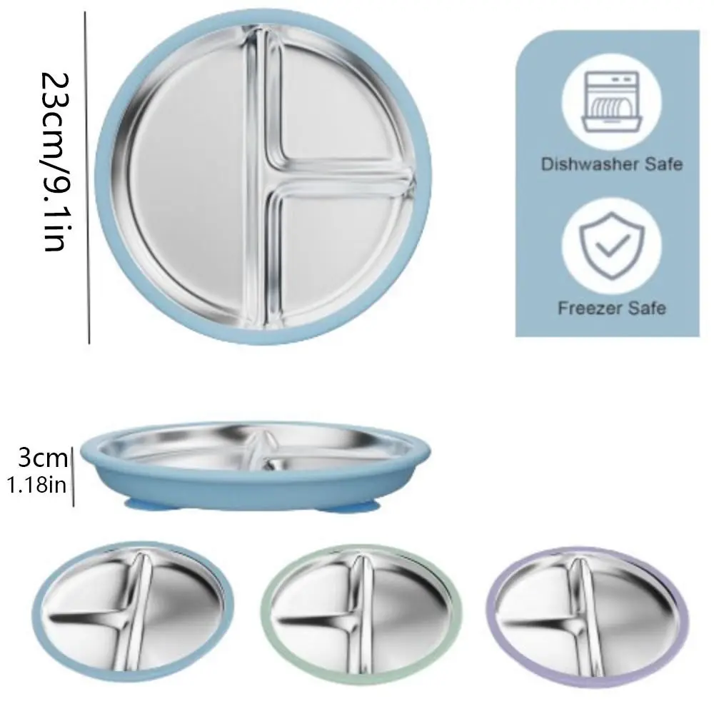 THREE POINT SUCTION KEEPS YOUR CHILD’S PLATE IN PLACE – Three suction points keep your plate securely in place on any flat surface.This allows your child to be more independent while learning to self-feed without creating a mess no more plates of food tipped over or thrown off high chairs. Unlike normal toddler suction plates that have only one suction point, our three point design makes it easy to remove your plate when your child is done eating without spilling food everywhere.