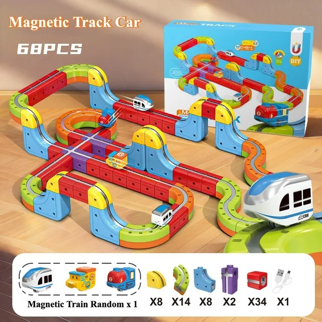 Diy Assembly 3D Electronic Magnetic Track Train Non-remote Control Rail Car Educational Children’s