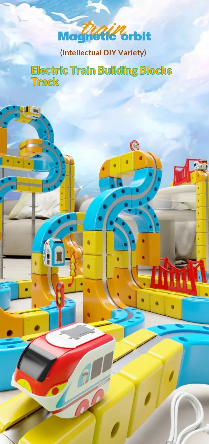 DIY Magic Transforming Magnetic Cube Track Set Electric Anti-Gravity High-Speed Train Model Toy Building