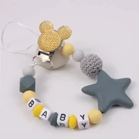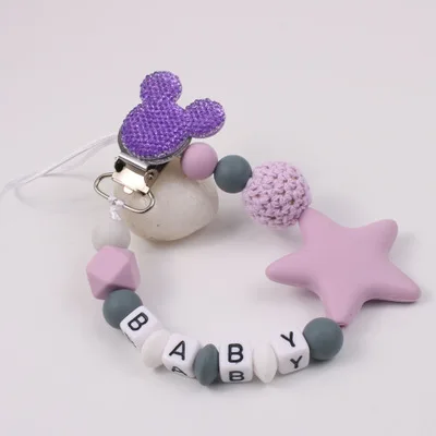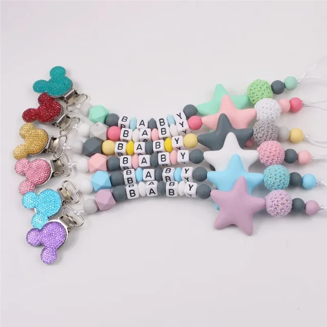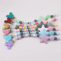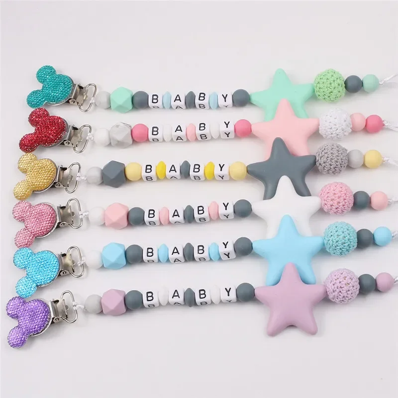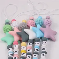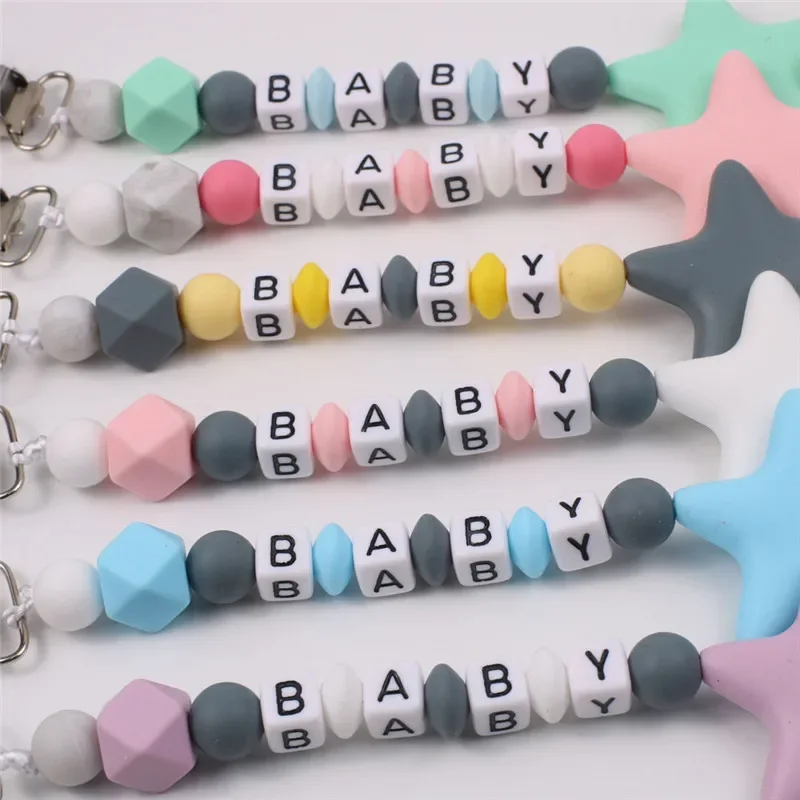 DIY Personalised Name Silicone Baby Pacifier Clips Chain Five Pointed Star Nipple Pacifier Name Holder