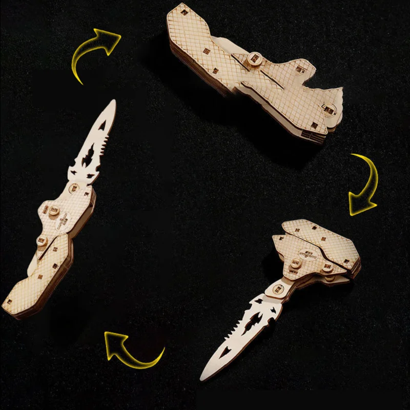 DIY Wooden Jigsaw Puzzle Block Process Education Model Manual Kit Multiple Folding Knife Assembly Toys