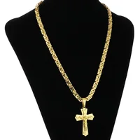 Diyalo Religious Jesus Cross Necklace Men Stainless Steel Crucifix Pendant with Byzantine Chain Necklaces