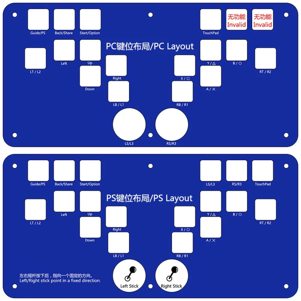 1. PS Layout: Two large round buttons respectively simulate the left and right joysticks (when pressed, the left joystick moves to the left and the right joystick moves to the right).
