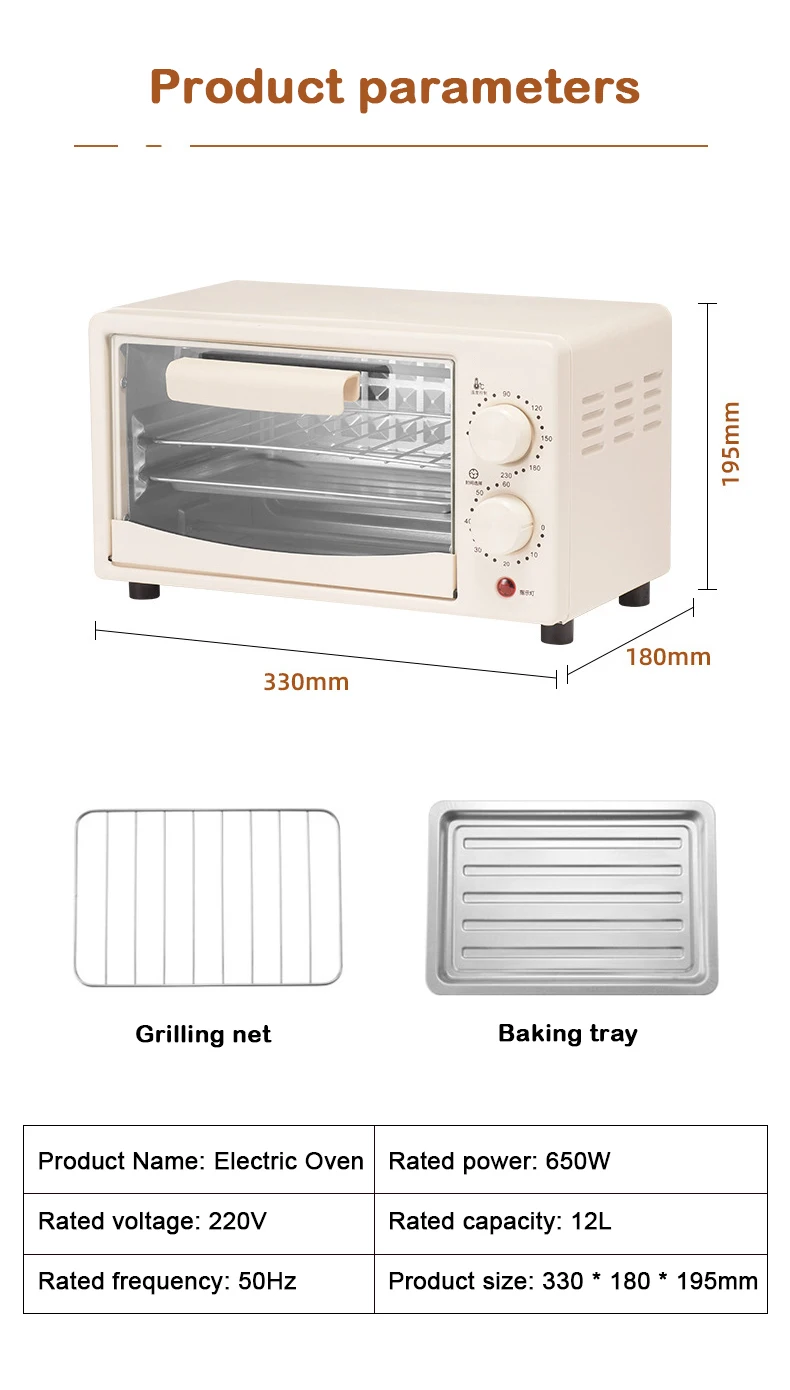 Mini Electric Oven Multifunction Timer Making Biscuits Bread Cake Pizza Cookies Baking Machine Toaster 12 Liter Barbecue Grill