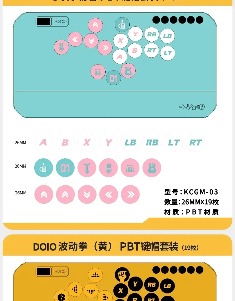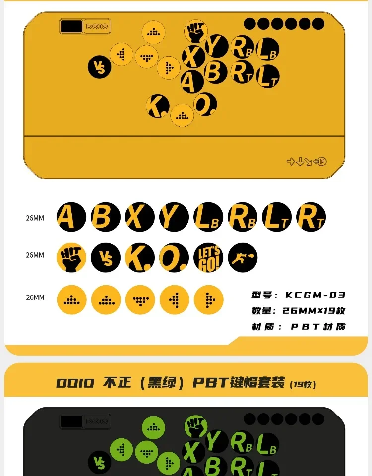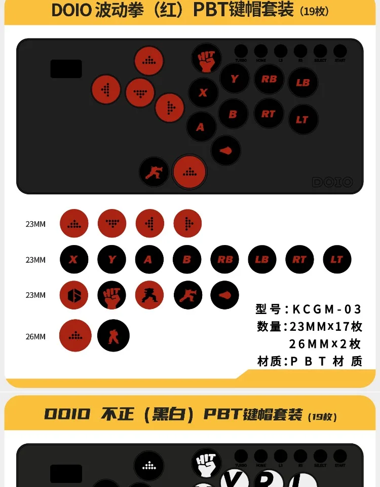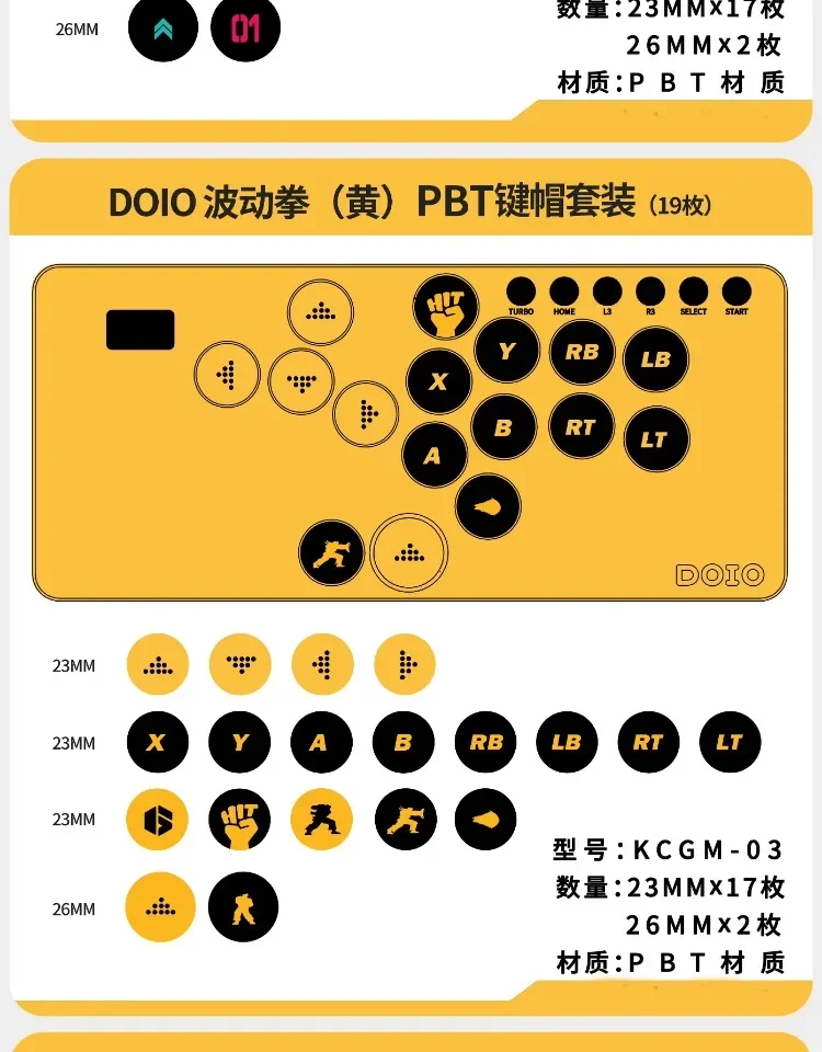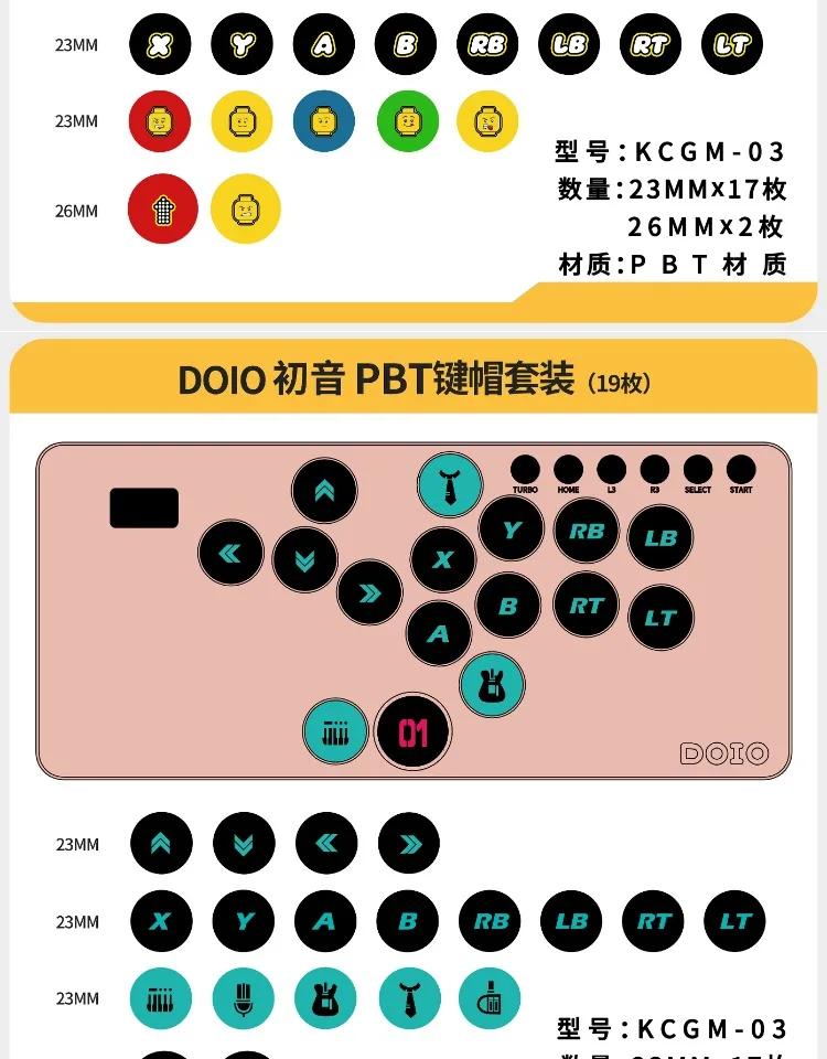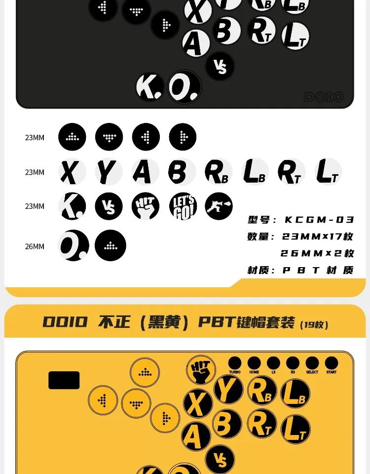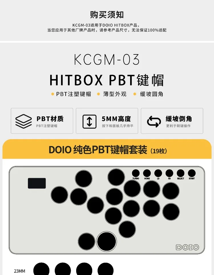 Doio Hitbox KCGM-03 Mini Keycaps Keyboard 19key PBT Sublimation Customized Keycap Set Arcade Game PC