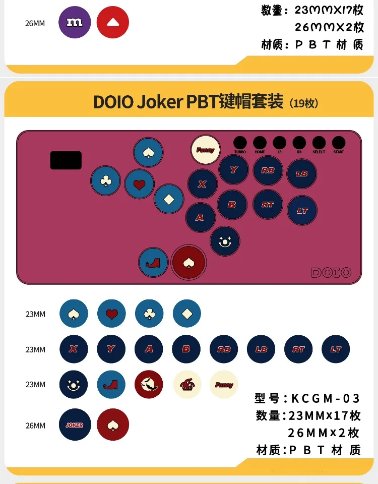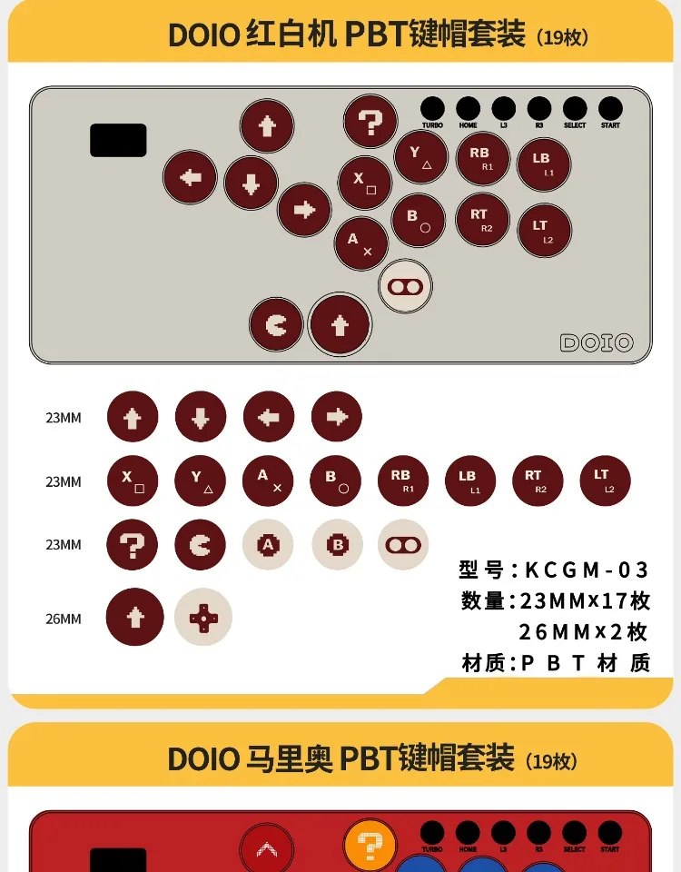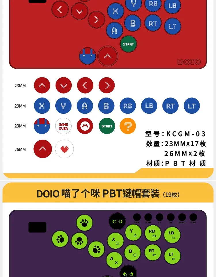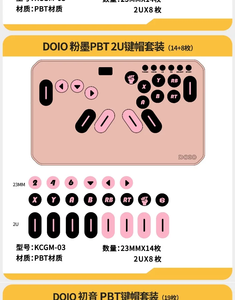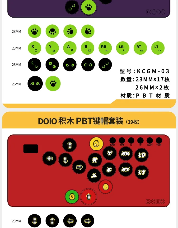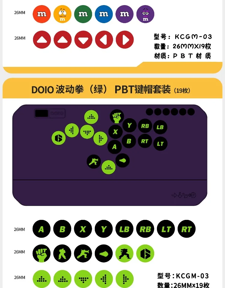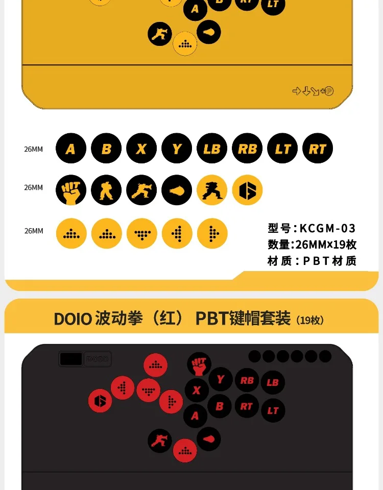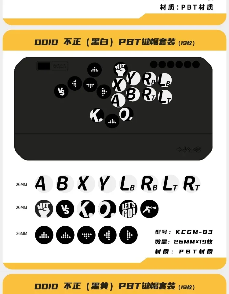 Doio Hitbox KCGM-03 Mini Keycaps Keyboard 19key PBT Sublimation Customized Keycap Set Arcade Game PC