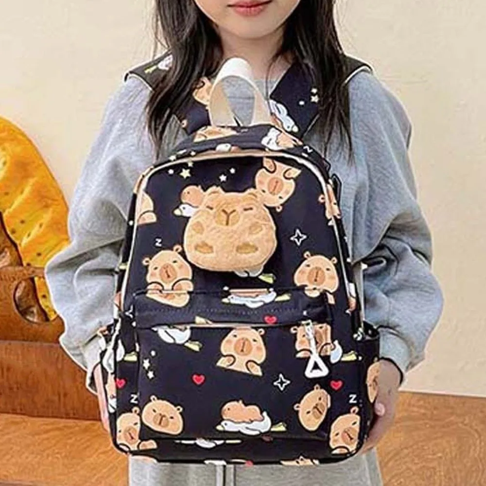 Doll Decoration Capybara Backpack Thickened Nylon Cartoon Animal Daypack Multi Functional Foldable Large Capacity School Bag