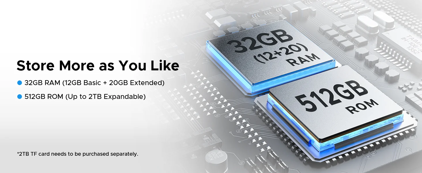 RAM & ROM | 32GB RAM (12GB+Up to 20GB Extended RAM)+512GB ROM / LPDDR5 |
