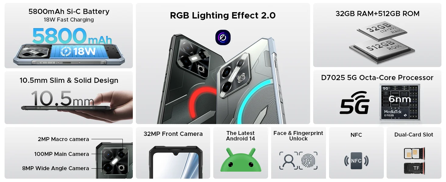 World Premiere DOOGEE Blade GT Pro 5G Rugged Phone LED Light Effect 12GB 512GB 10.5mm Ultra-thin 100MP AI Camera 5800mAh Battery