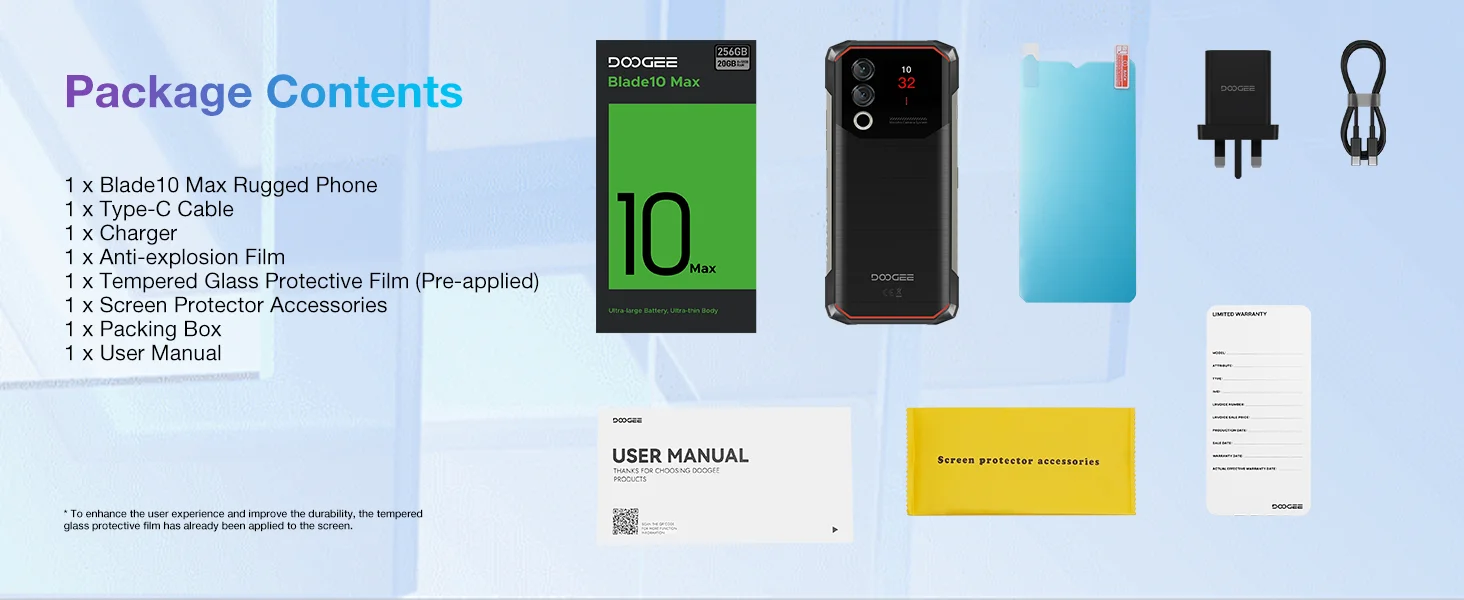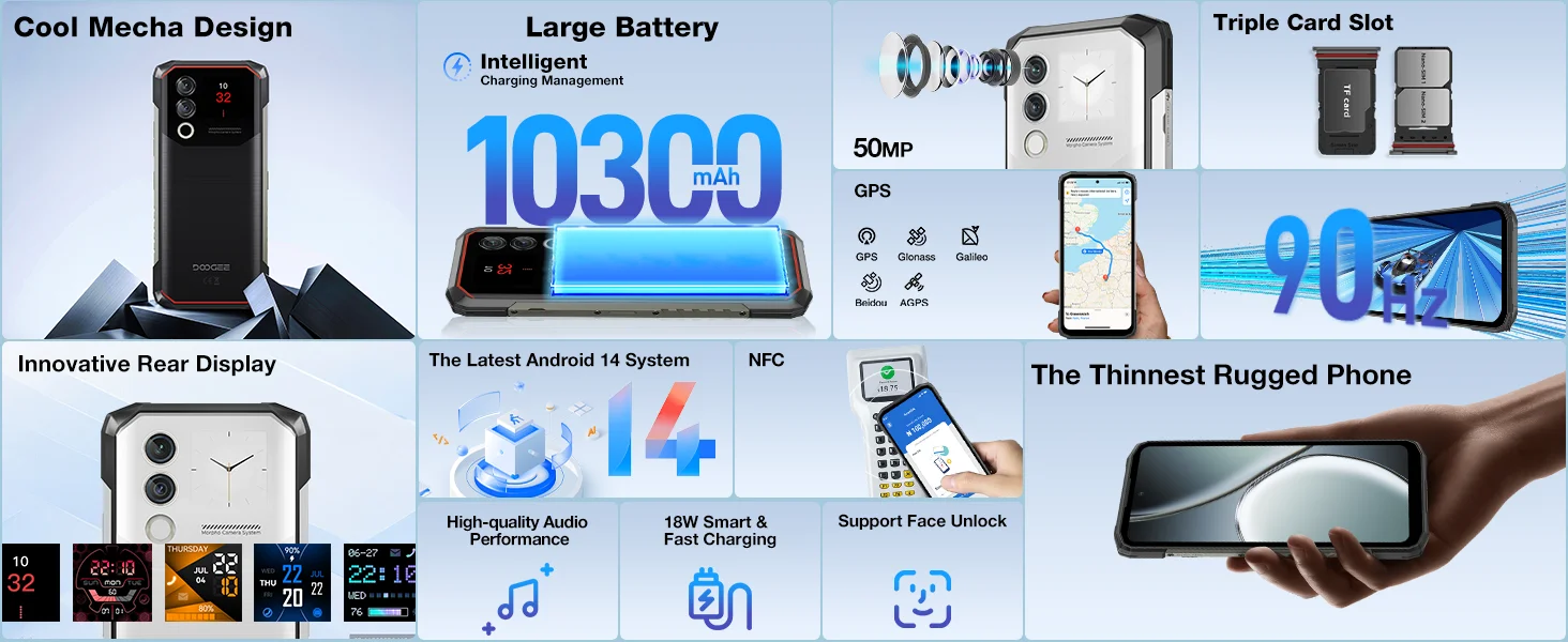 World Premiere DOOGEE Blade10 Max Rugged Phone 6.56″ 90Hz Display 8GB+256GB Rear Display 50MP AI Main Camera 10300mAh 18W Charge|