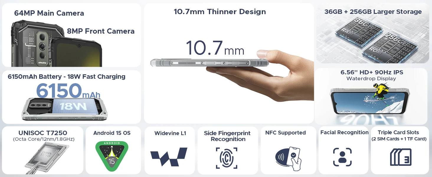 DOOGEE Blade10 Ultra Energy Rugged Phone Gemini AI 6150mAh Battery 6.56” Screen 10.7mm Ultra-thin