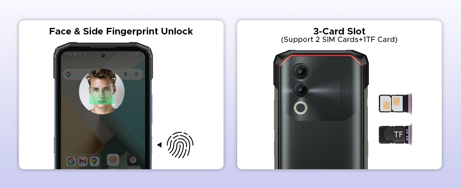 Triple Card Slot (Support 2 SIM Cards + 1 TF Card) |