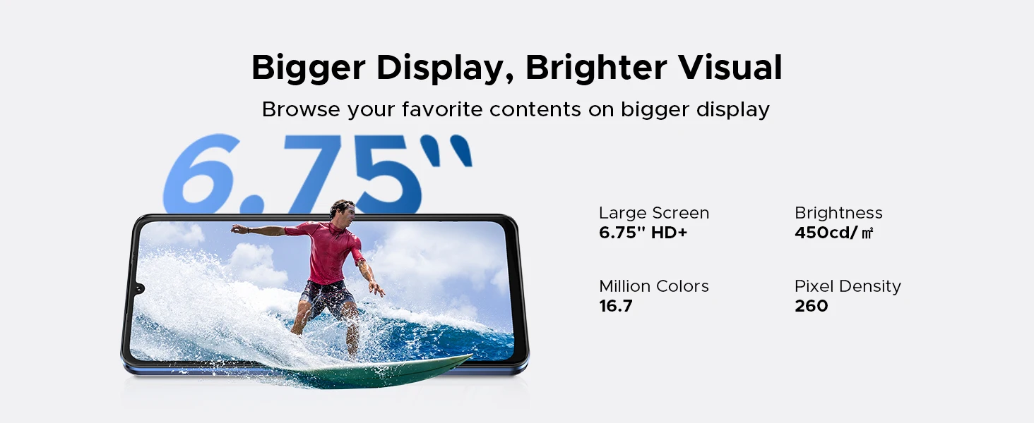6.75″ HD+120Hz IPS Waterdrop Display