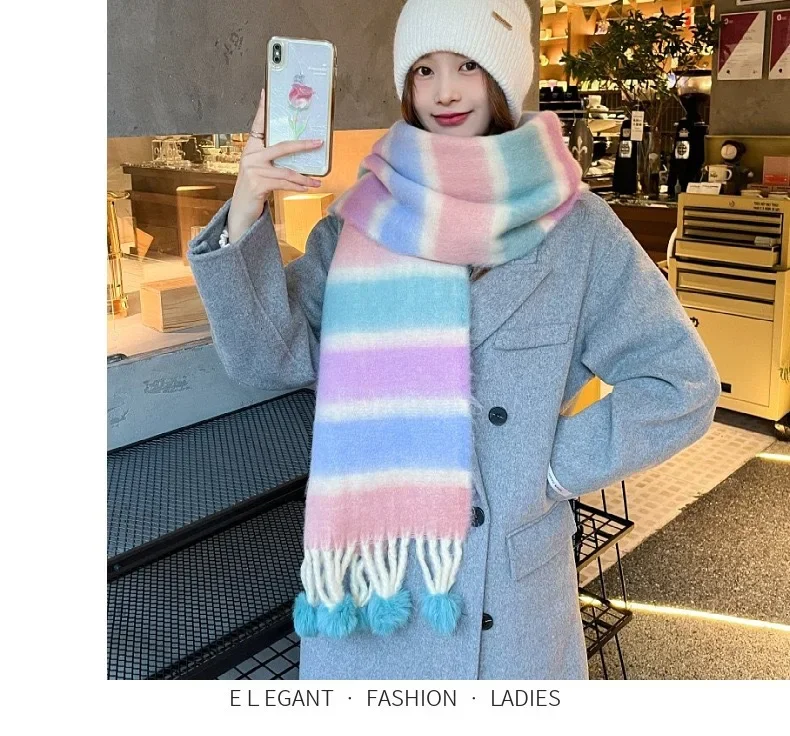 • Soft Mohair Material : Crafted from soft mohair, this scarf offers a luxurious feel and warmth, perfect for winter wear.