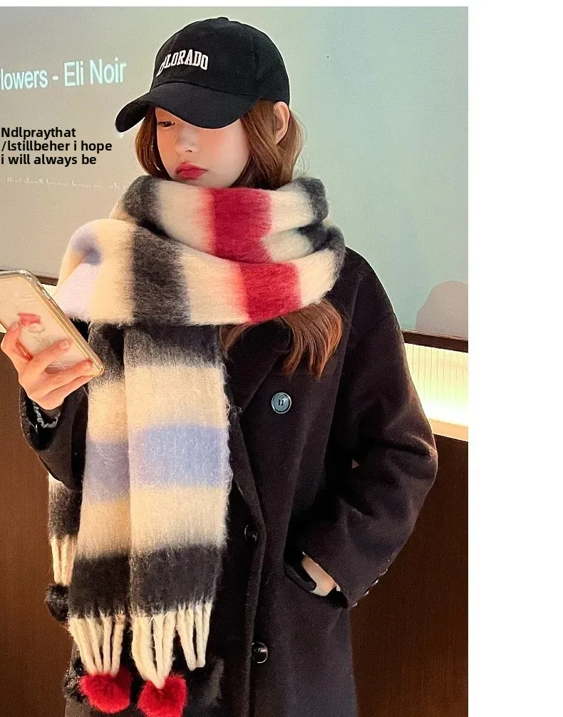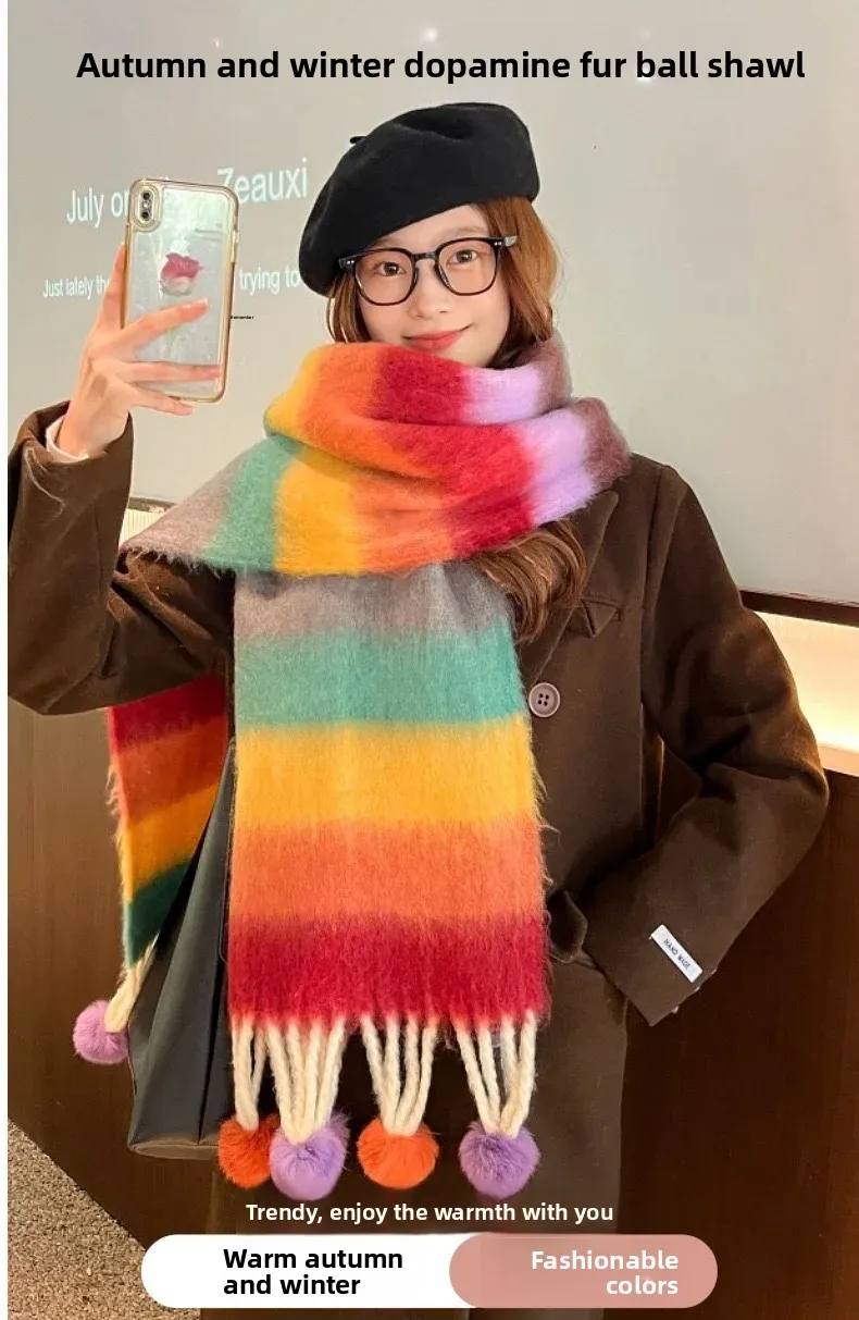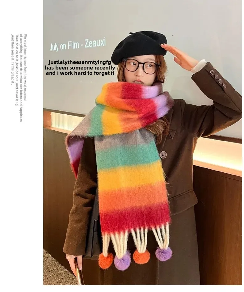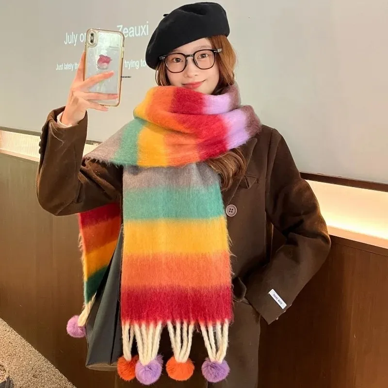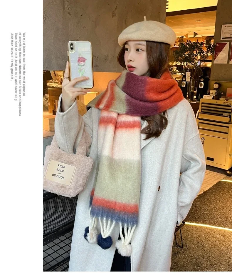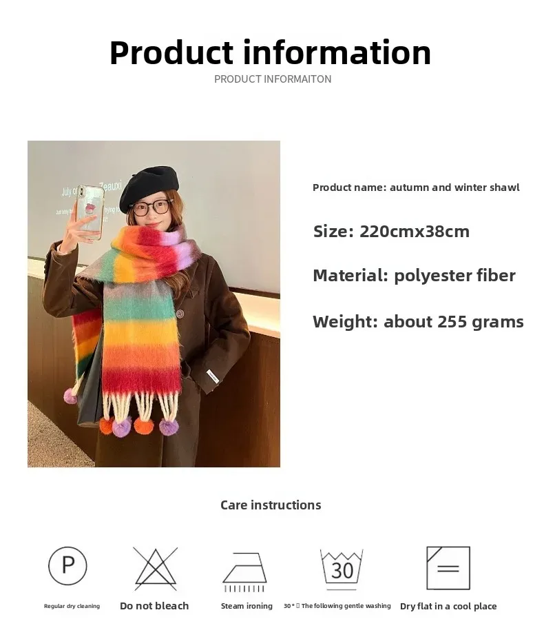 • Real Rabbit Hair Ball : Featuring a real rabbit hair ball, this scarf adds a touch of elegance and sophistication.