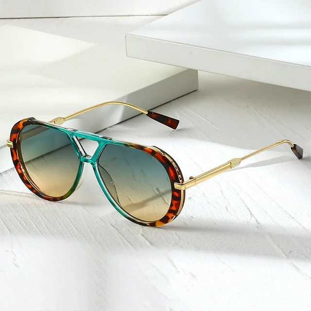 Double Bridge Sunglasses Women Oversized Retro Fashion Vintage Pilot Sun Glasses Men Luxury Trendy Design