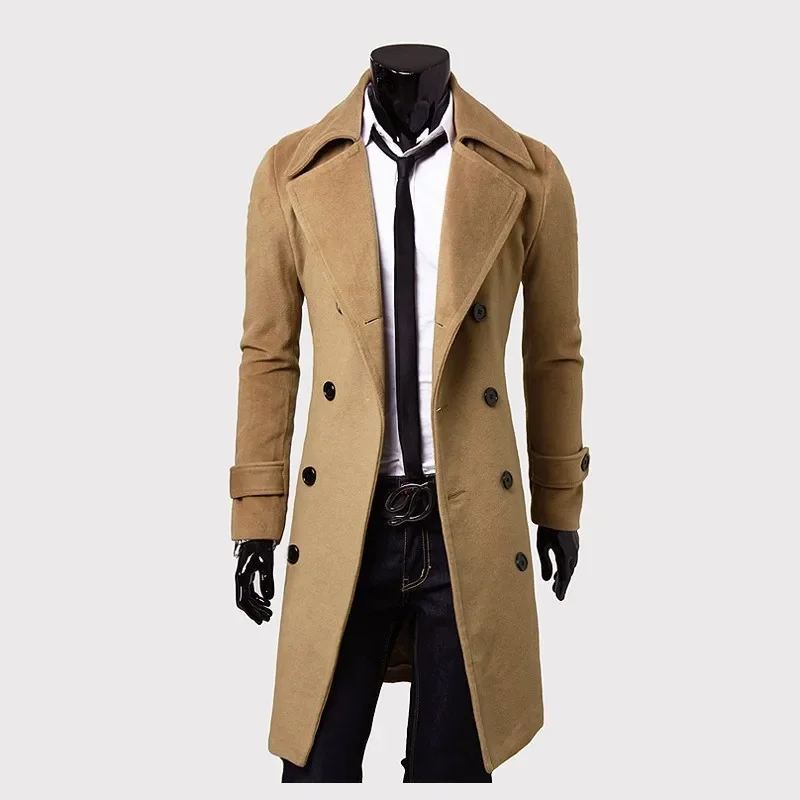 Double-Buttoned Long-Sleeve Woolen Jacket For Men Casual Autumn/Winter Fashion Outerwear Plus Size Smooths