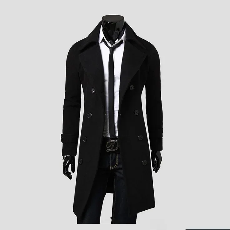Double-Buttoned Long-Sleeve Woolen Jacket For Men Casual Autumn/Winter Fashion Outerwear Plus Size Smooths Your Silhouette