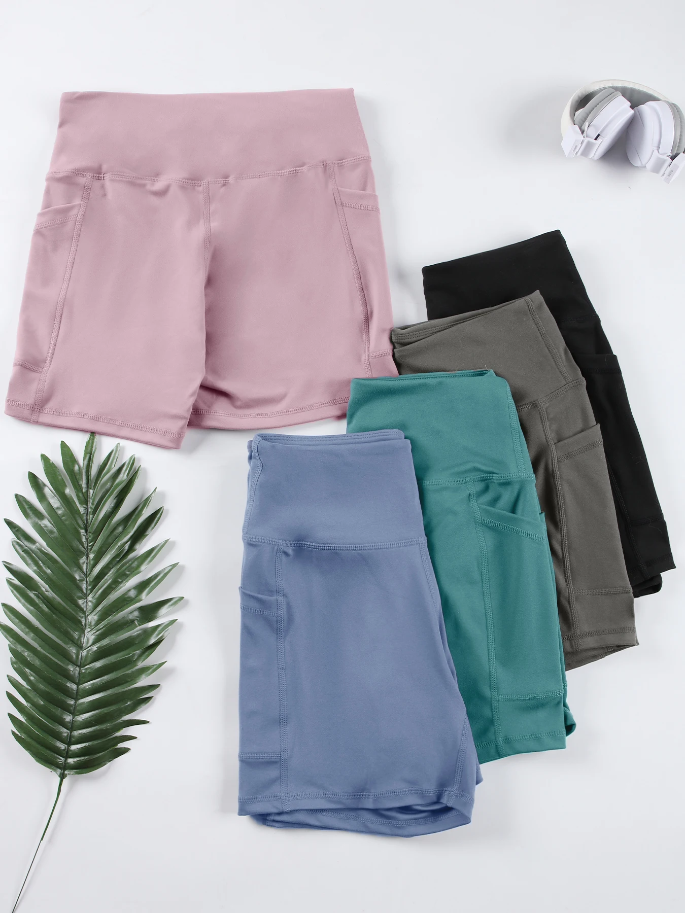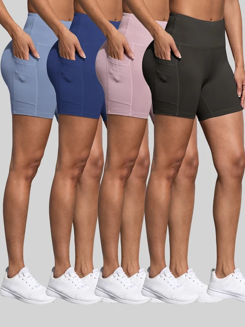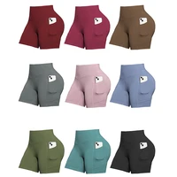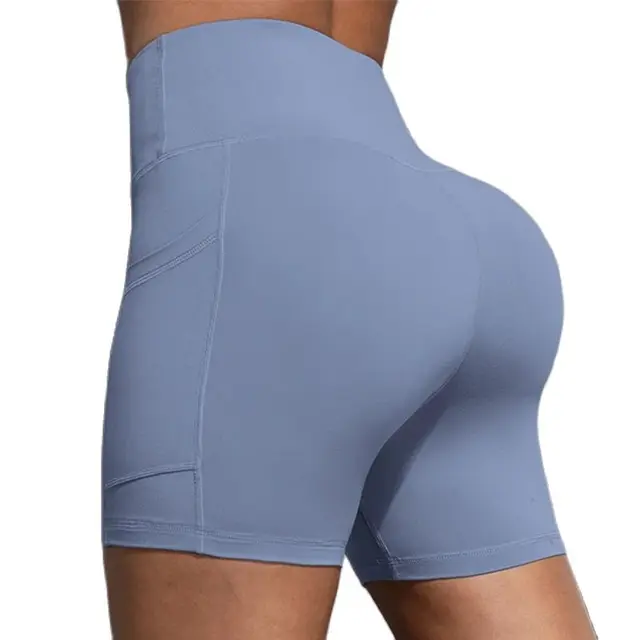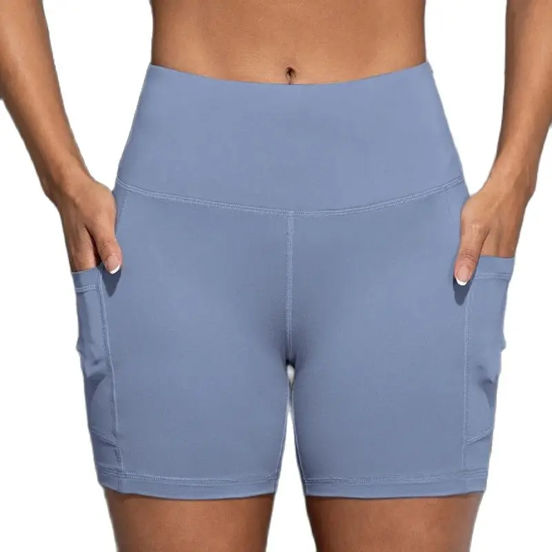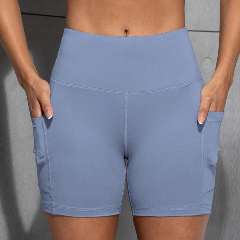 Double Pocket Yoga Shorts for Women Solid Color Butt Lifting Cycling Tight Outdoors Elastic Jogging Shorts Female Sportswear